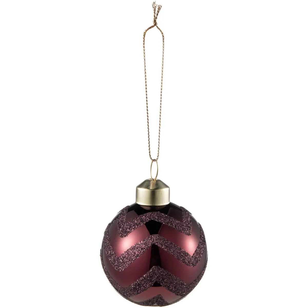 Nydelig burgunder julekule med glitterstriper. Morsomt og lekent mønster som passer perfekt på juletreet denne julen. Frisk opp og pynt et tre som gjenspeiler din smak og personlighet. Kombiner gjerne med julekuler i gull eller grønn.
