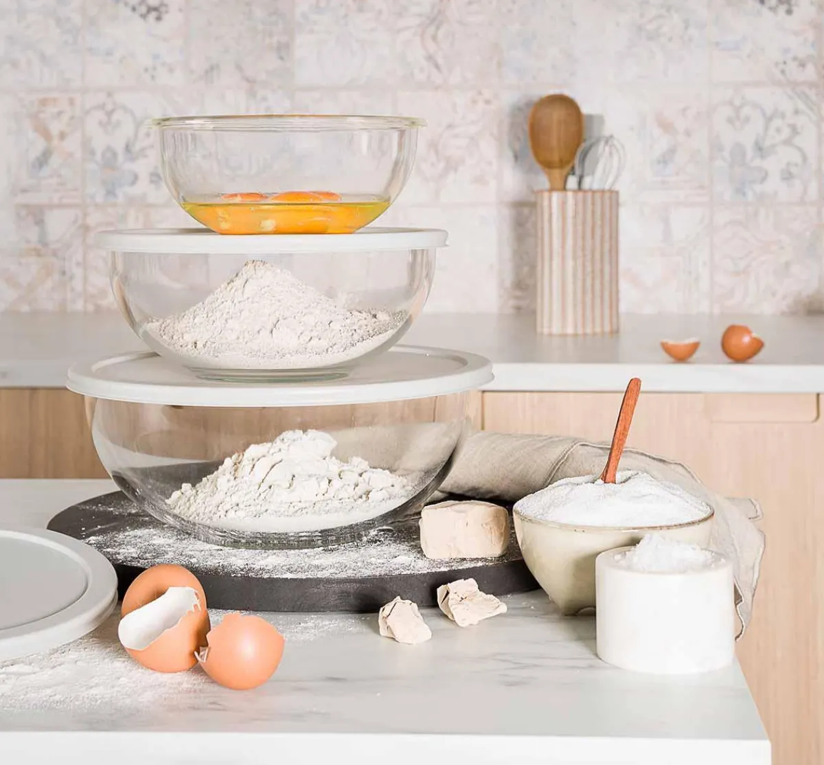 Praktisk og allsidig bollesett i glass med lokk – perfekt til både servering, oppbevaring og matlaging. Settet består av tre boller i ulike størrelser, alle med tilhørende plastlokk som holder maten fersk lenger. Glassbollene er gjennomsiktige, slik at du enkelt ser innholdet, og de kan stables for plassbesparende oppbevaring i skapet.