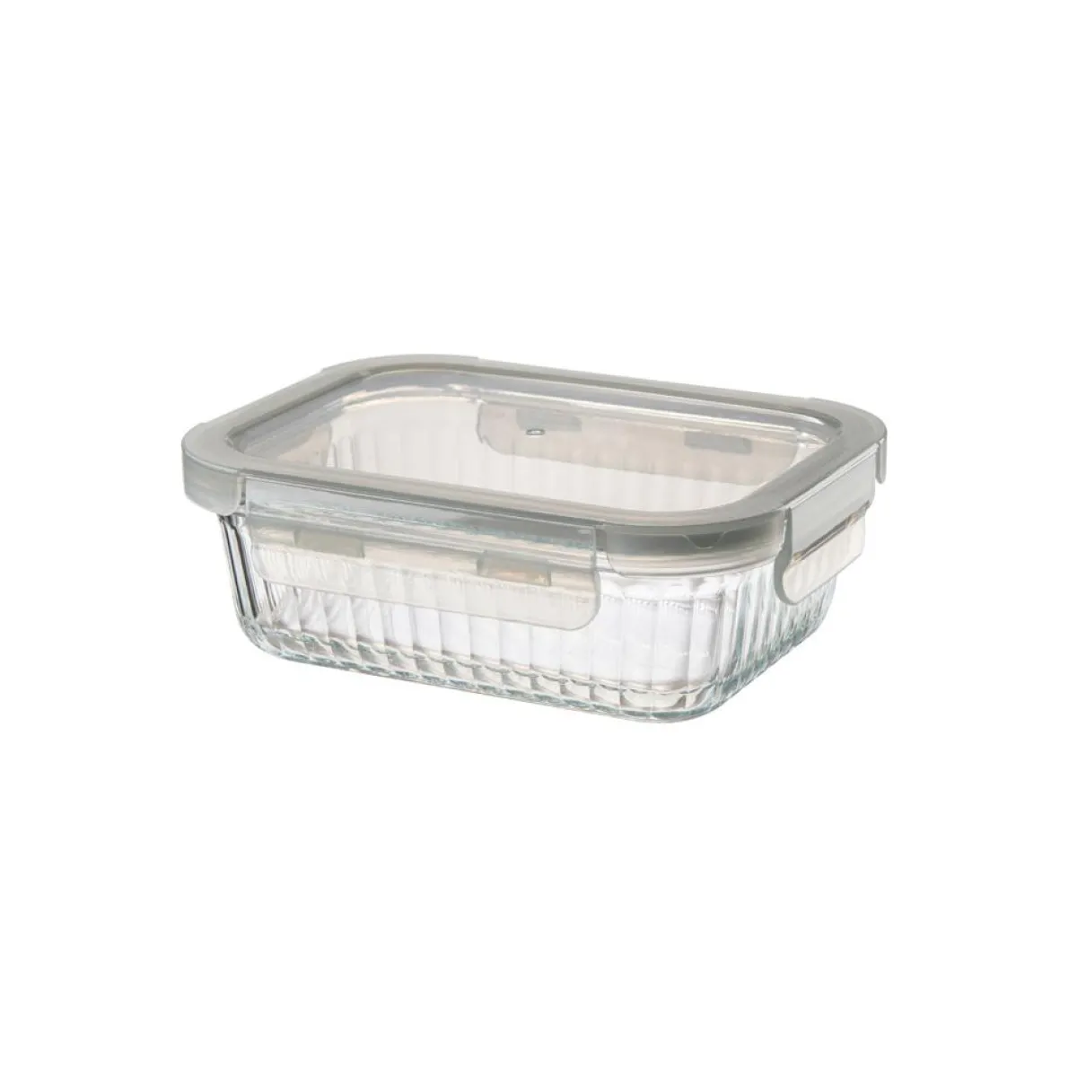 Praktisk og fin bolle i borosilikatglass med lokk. Glasset har dekorative riller og er like fine til servering som til oppbevaring av mat. .