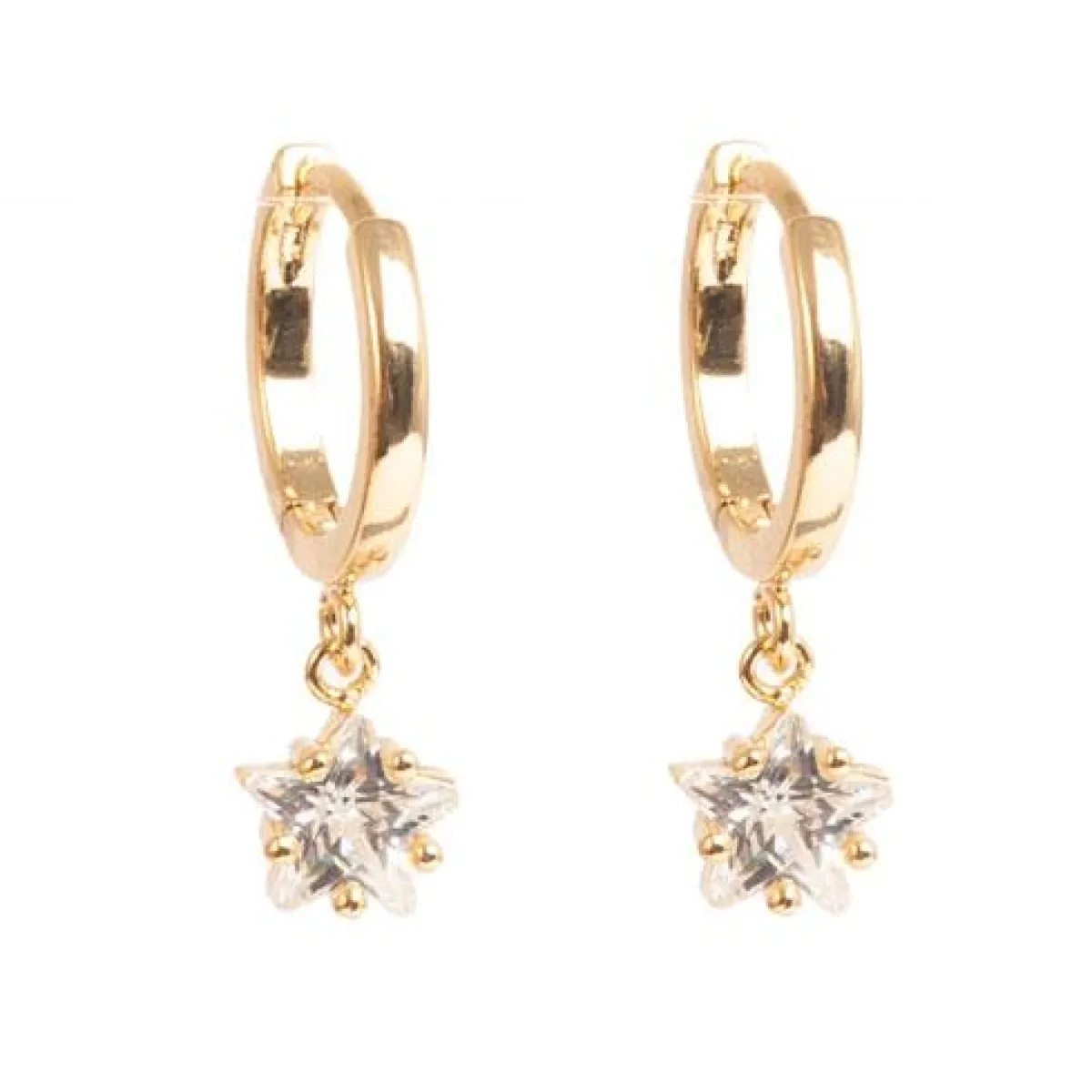 Pene, blanke øreringer i gullbelagt messing med flotte stjerner i glitrende zirconer.