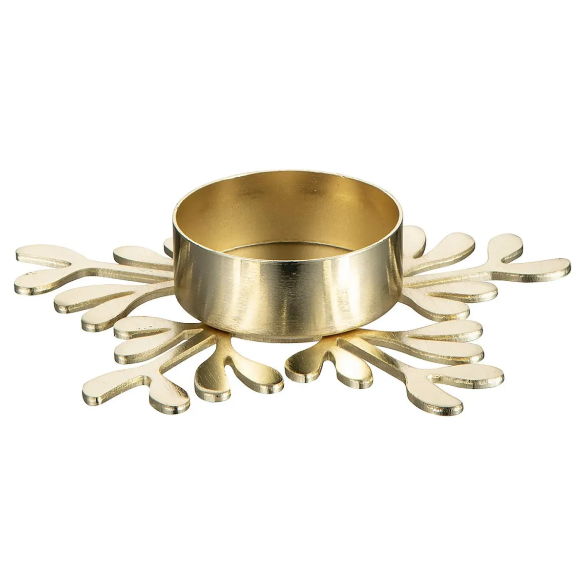 En telysholder i gull med vakre detaljer som kan minne om blomsterrøtter. Dekorer på et lysfat med andre lykter og figurer eller la den spre røttene sine over middagsbordet i julen.