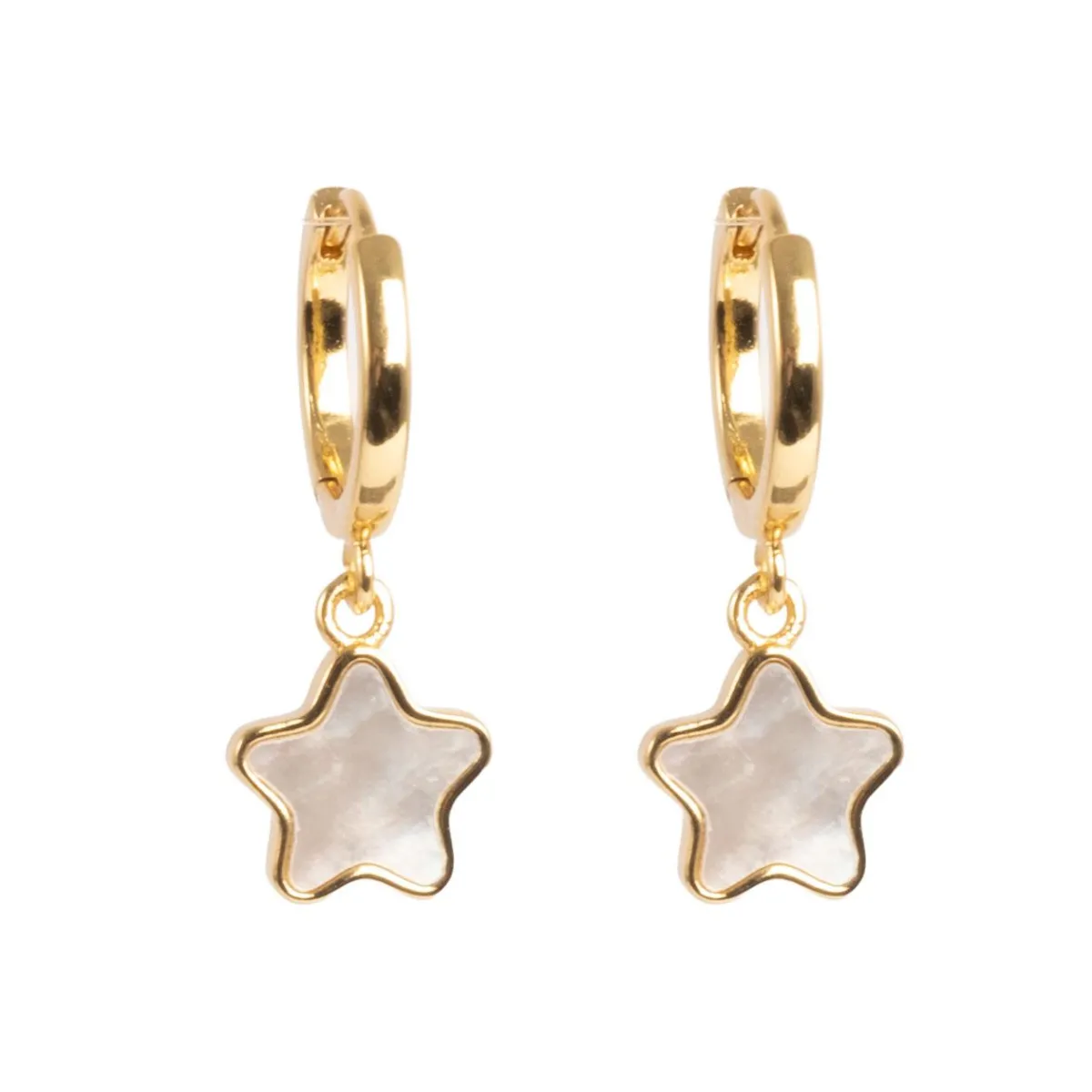 Øreringer med stjerneanheng i hvitt, kombinert med gull for en elegant detalj som lyser opp antrekket ditt!
