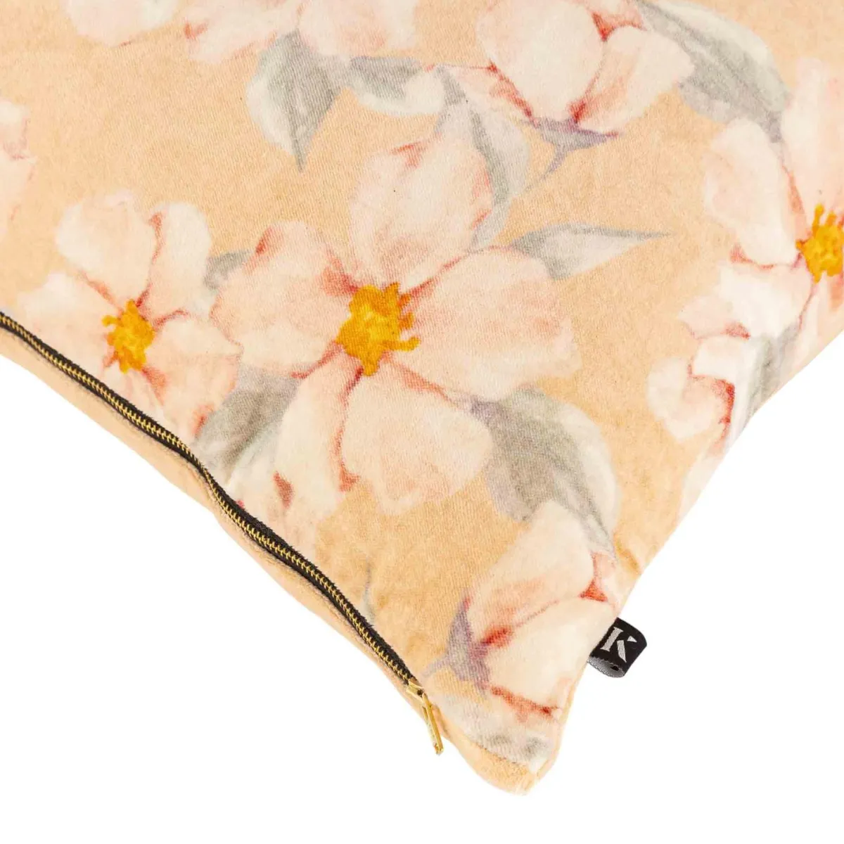 Nydelig pynteputetrekk i myk velur og vårlig blomstermotiv. Enkel og fin til sofaen sammen med ensfargede putetrekk i matchende farger.
