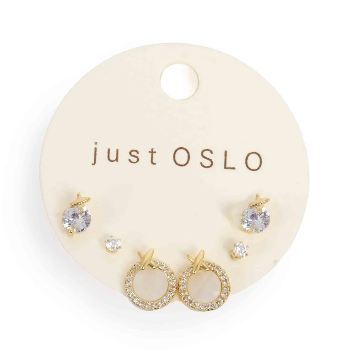 Her får du mye for pengene! Tre sett med ørepynt i metall og med perlemor. Perfekt for deg med mange hull! Belagt med gull.