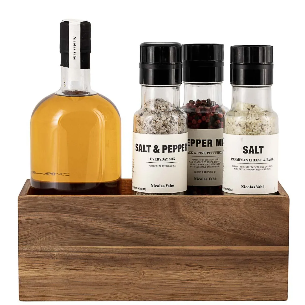 Kjekk settekasse i akasietre som passer perfekt på kjøkkenet til krydder og oljer. Hold ordren ved å holde ting samlet, og plasser enkelt på bordet når maten skal nytes.