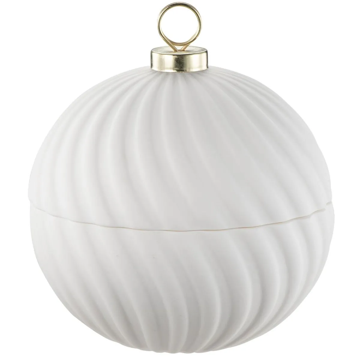Nydelig krukke i hvit porselen som kan brukes til oppbevaring på stuebordet eller i hyllen. Formet som en julekule og passer derfor perfekt inn som den siste prikken over i’en i juledekorasjonen.