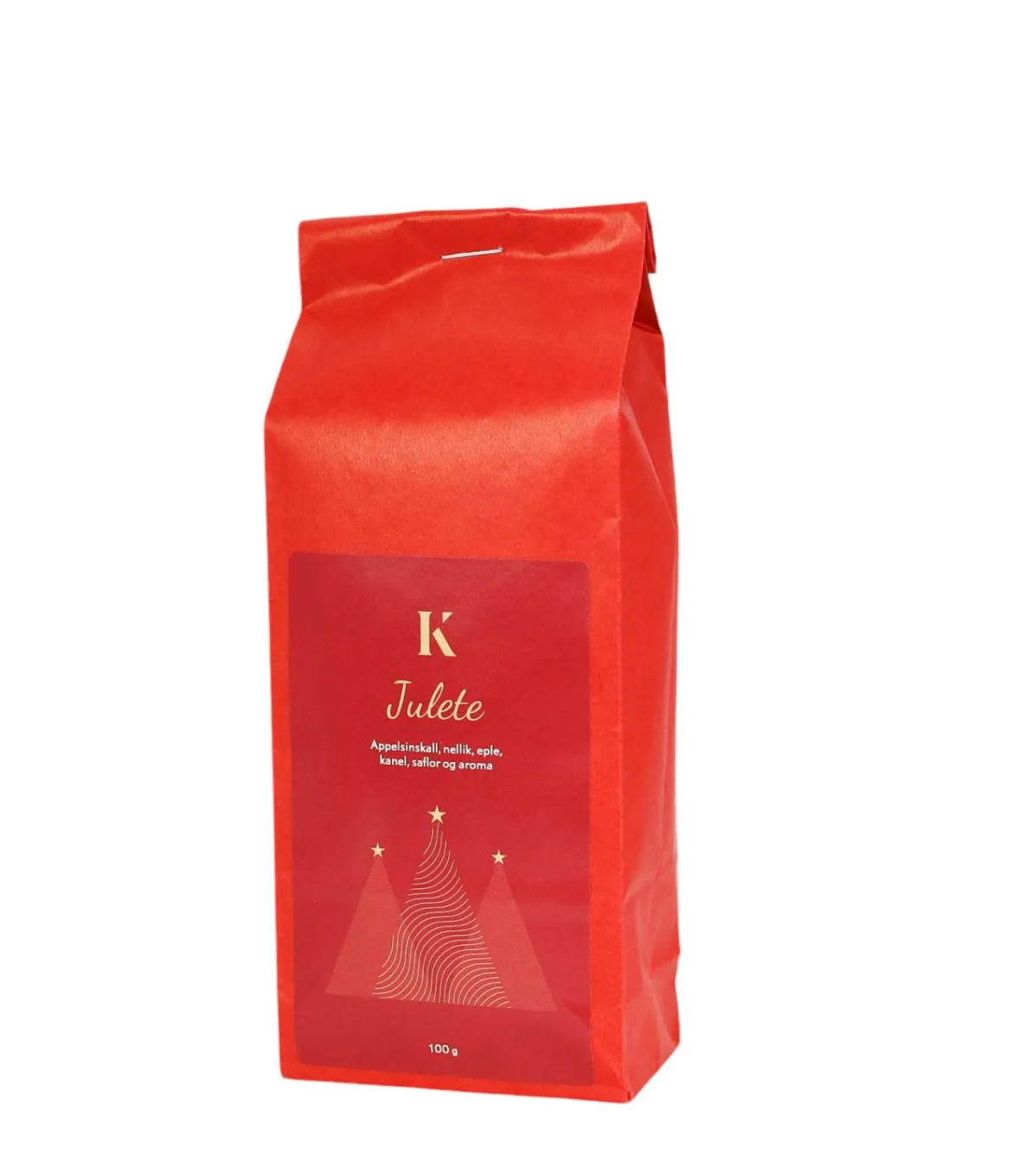 En pose med julete, fylt med smakfulle ingredienser som appelsinskall, nellik, eple, kanel, saflor og aroma – perfekt for å sette deg i den riktige stemningen i juletiden. Teen kommer i en rød emballasje som gjør den fin å gi som en liten gave eller bare å ha hjemme for koselige vinterstunder. Enten du nyter den alene eller sammen med gode venner, vil denne juleteen garantert skape en varm atmosfære.