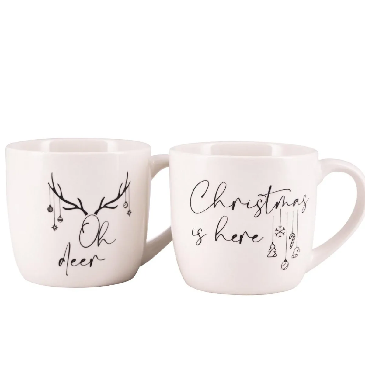 Nydelige hvite krus med julemotiv. Koppene er med på å skape julestemning i hjemmet og passer perfekt til morgenkaffen hele adventstiden og julen.
