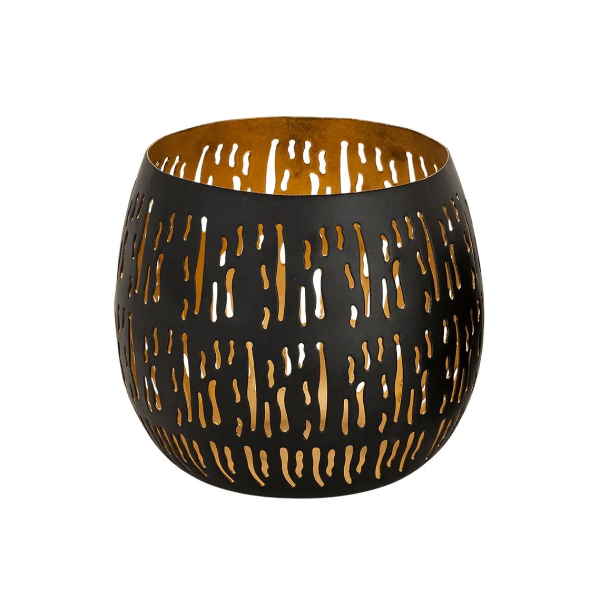 Lyslykten sprer et varmt og koselig skinn gjennom små, uregelmessige utskjæringer. Den avrundede formen gir den et mykt uttrykk som passer like fint i en vinduskarm som på et brett på stuebordet. Sammen med den blir det ekstra hyggelig når mørket senker seg.