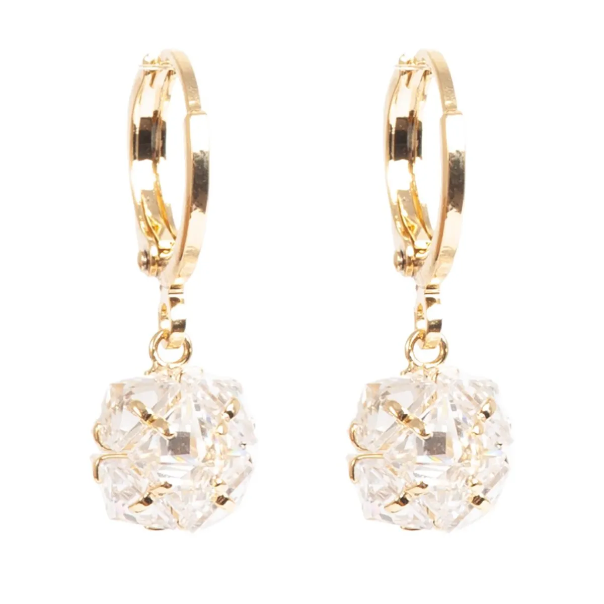 Denne morsomme kulen er laget av cubic zirkonia steiner som er satt sammen til en rund kule. Den glitrer veldig fint og blir en flott skinnende øredobb. Nikkelfritt motesmykke av gullbelagt messing og krystallstener.