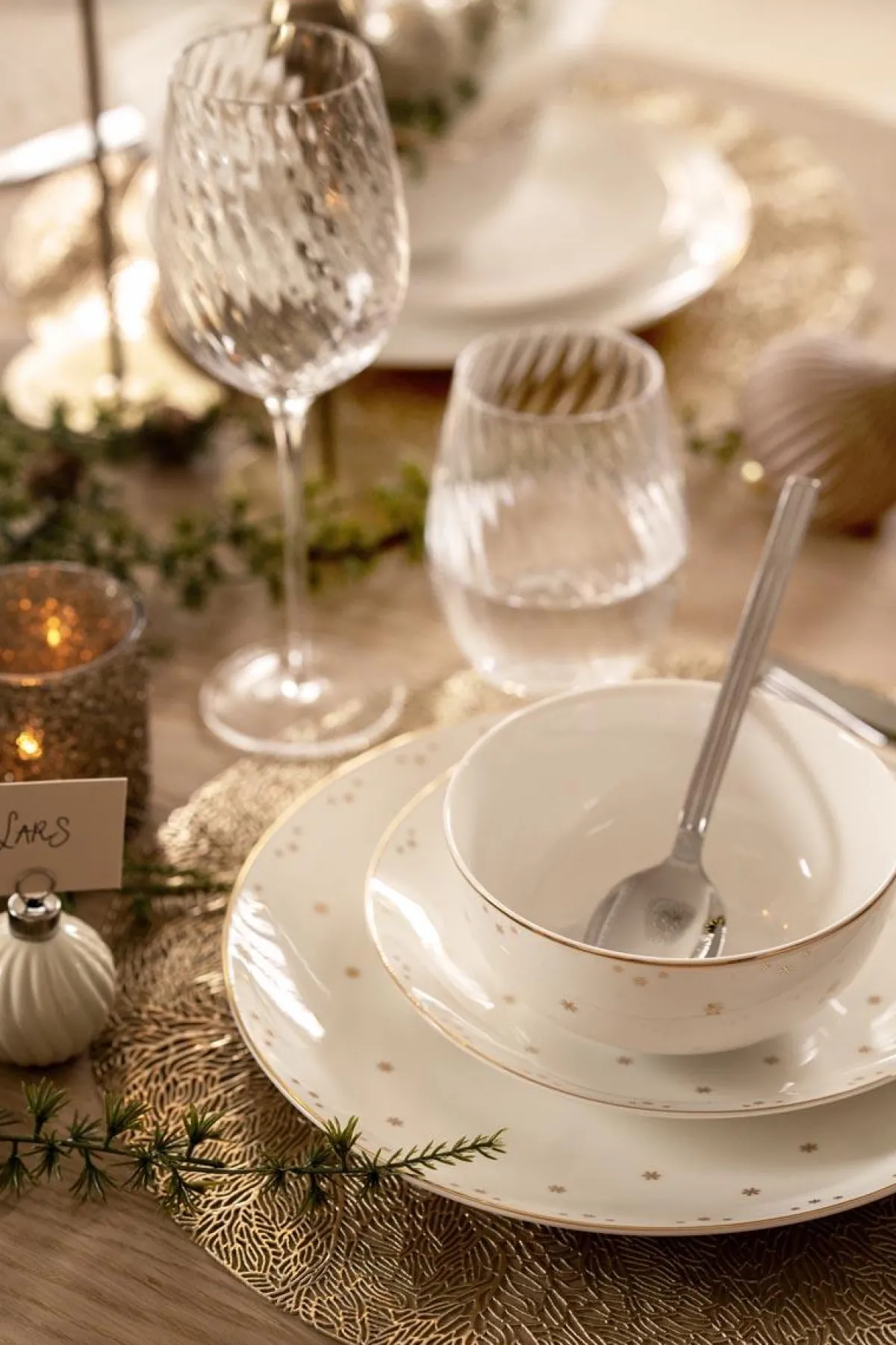 Skål Stjernehimmel med gulldetaljer gir bordet et eksklusivt og stjernesprakende preg. Perfekt til småretter, snacks eller dessert. Sjekk ut hele vår for et fullverdig servise!