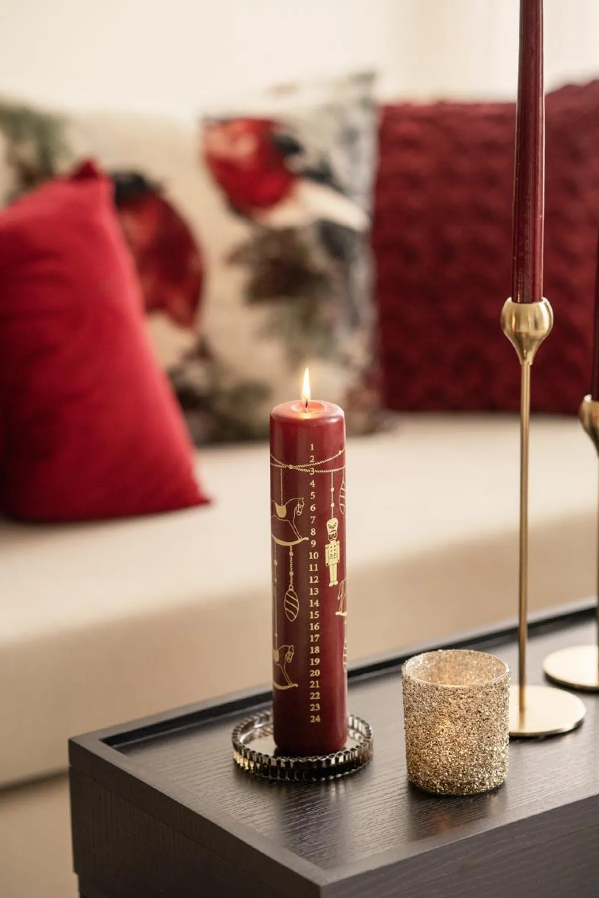 Skap deg et glittrende hjem med denne herlige telysestaken i glass med gullfarget glitter. Dette blir en nydelig detalj med tekstur på stuebordet, festbordet, skjenken eller lysfatet.