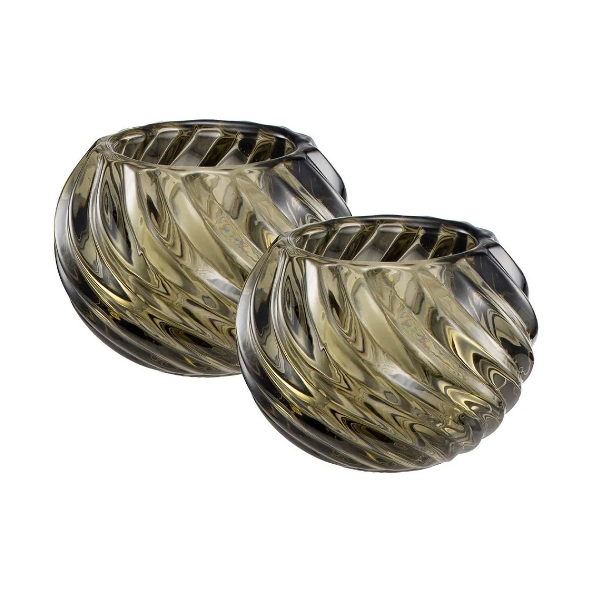 Telysholderne har et vakkert spiralformet mønster i gjennomfarget glass og gir et stemningsfullt lys på bordet. Kombiner gjerne med våre lysfat og matchende lysestaker for å pynte opp sofabordet eller kommoden. De kommer i 2-pakning og leveres i gaveeske – perfekt som vertinnegave, pakkelek eller en liten oppmerksomhet.