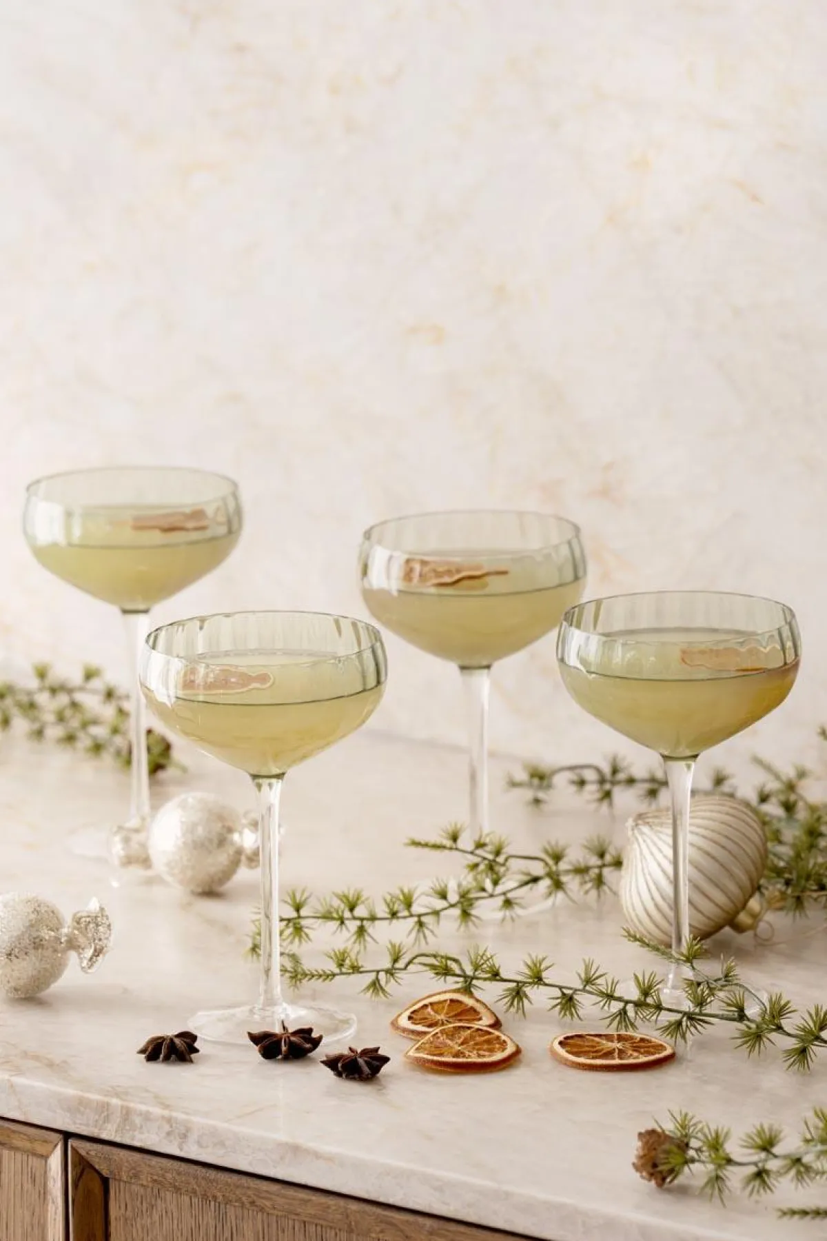 Sett med fire elegante champagneglass i en dus grønn tone med vakkert riflet design. Perfekte til festlige anledninger eller når du vil dekke bordet med stil.
