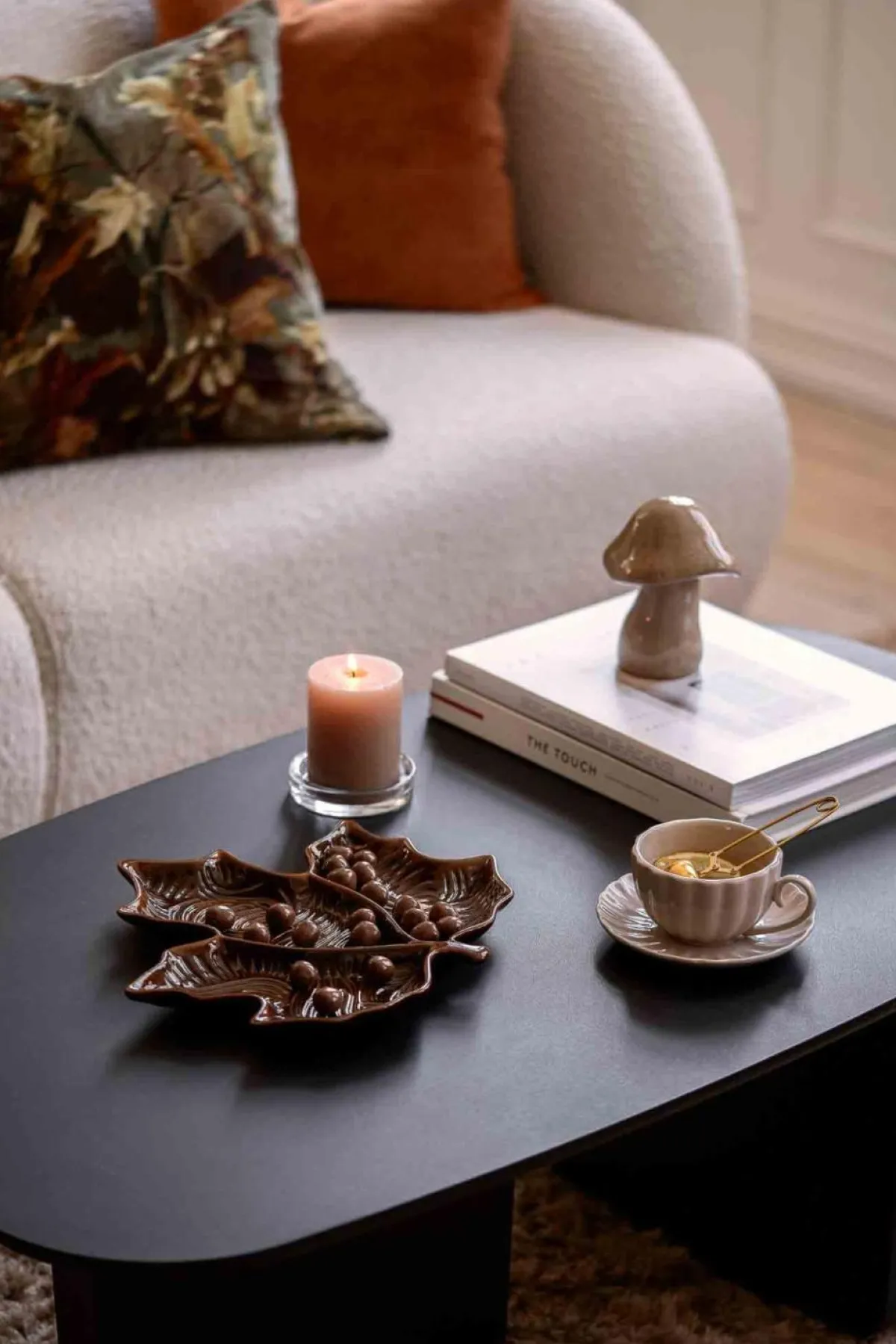 Oppdag sjarmen i naturen med vårt dekorative fat formet som et lønneblad i stentøy. Med sin detaljerte og realistiske utforming, legger dette dekorfatet en unik og elegant touch til ethvert rom, enten det er på stuebordet, i entreen eller som et blikkfang på spisebordet.