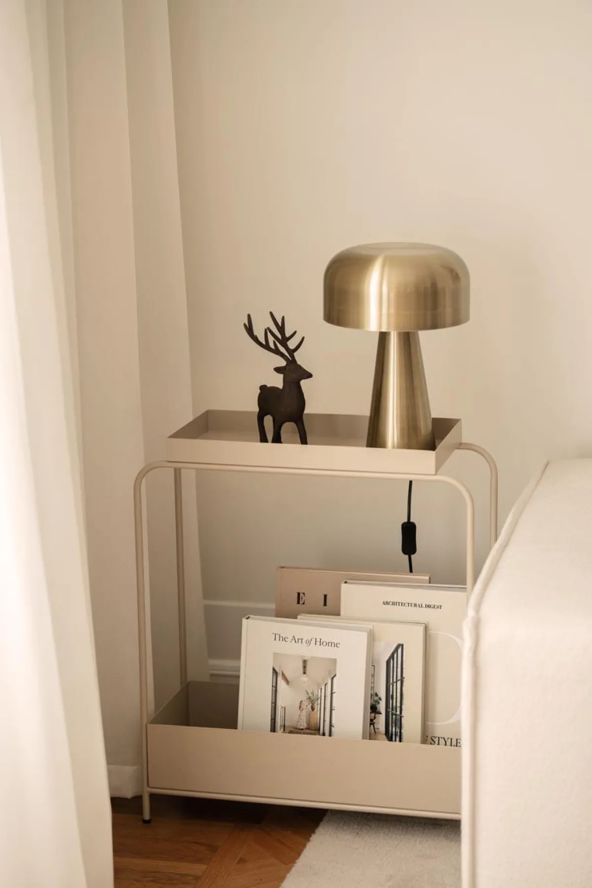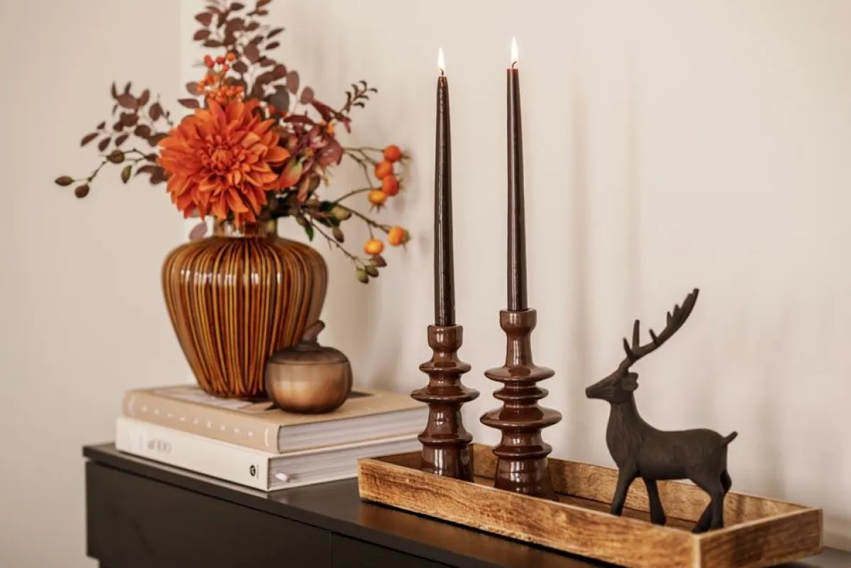 En stolt hjort med elegante gevir – perfekt til både hyllekanten og lysfatet, gjerne i selskap med kongler, keramikk og levende lys. Den mørke overflaten gir en lun kontrast til naturmaterialer og varme tekstiler.