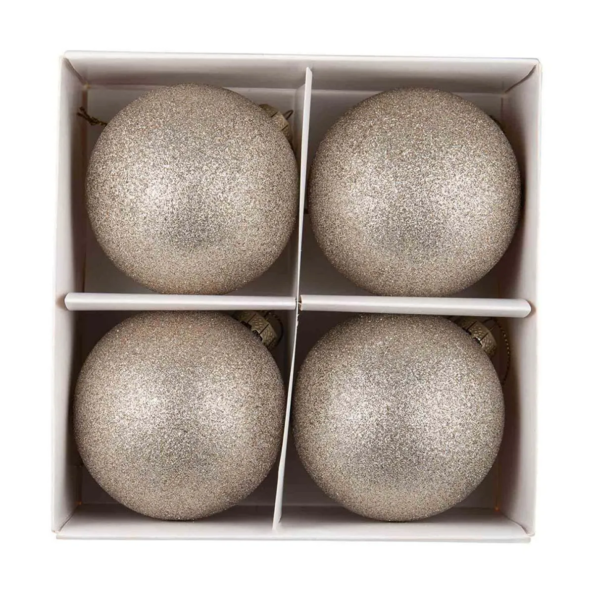 Pynt juletreet ditt med vår 4-pakning med glitrende julekuler i gull! Disse elegante julekulene tilfører en luksuriøs og festlig touch til din juledekorasjon.