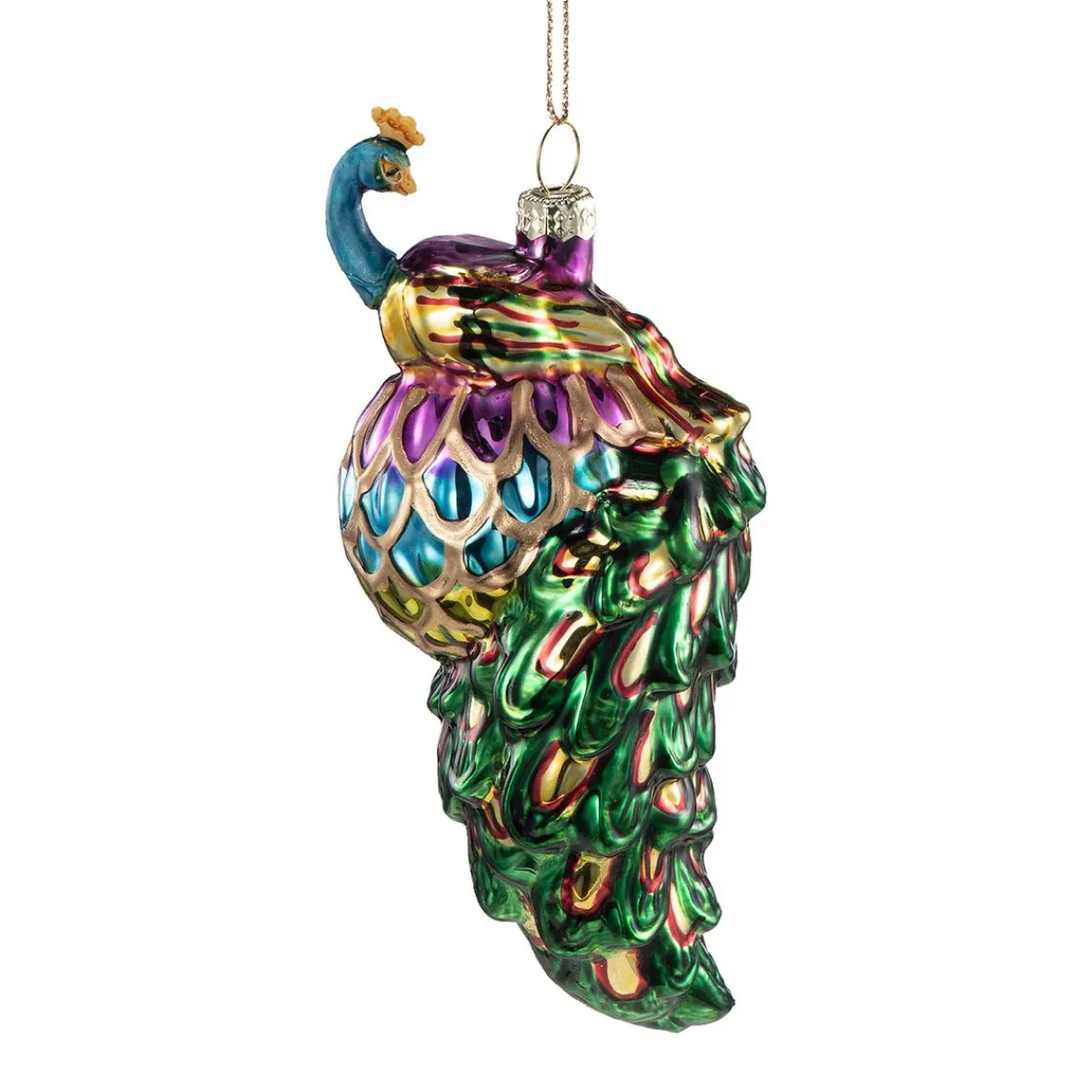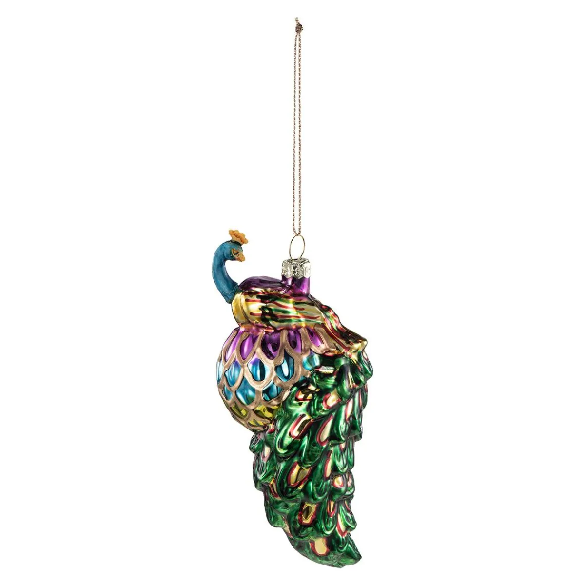 En fargerik påfugl i glass gir juletreet et lekent og levende uttrykk. Perfekt for deg som liker det litt annerledes og vil skape en pyntet gren med blikkfang. Utforsk flere julefigurer og i samme stil i vårt sortiment.