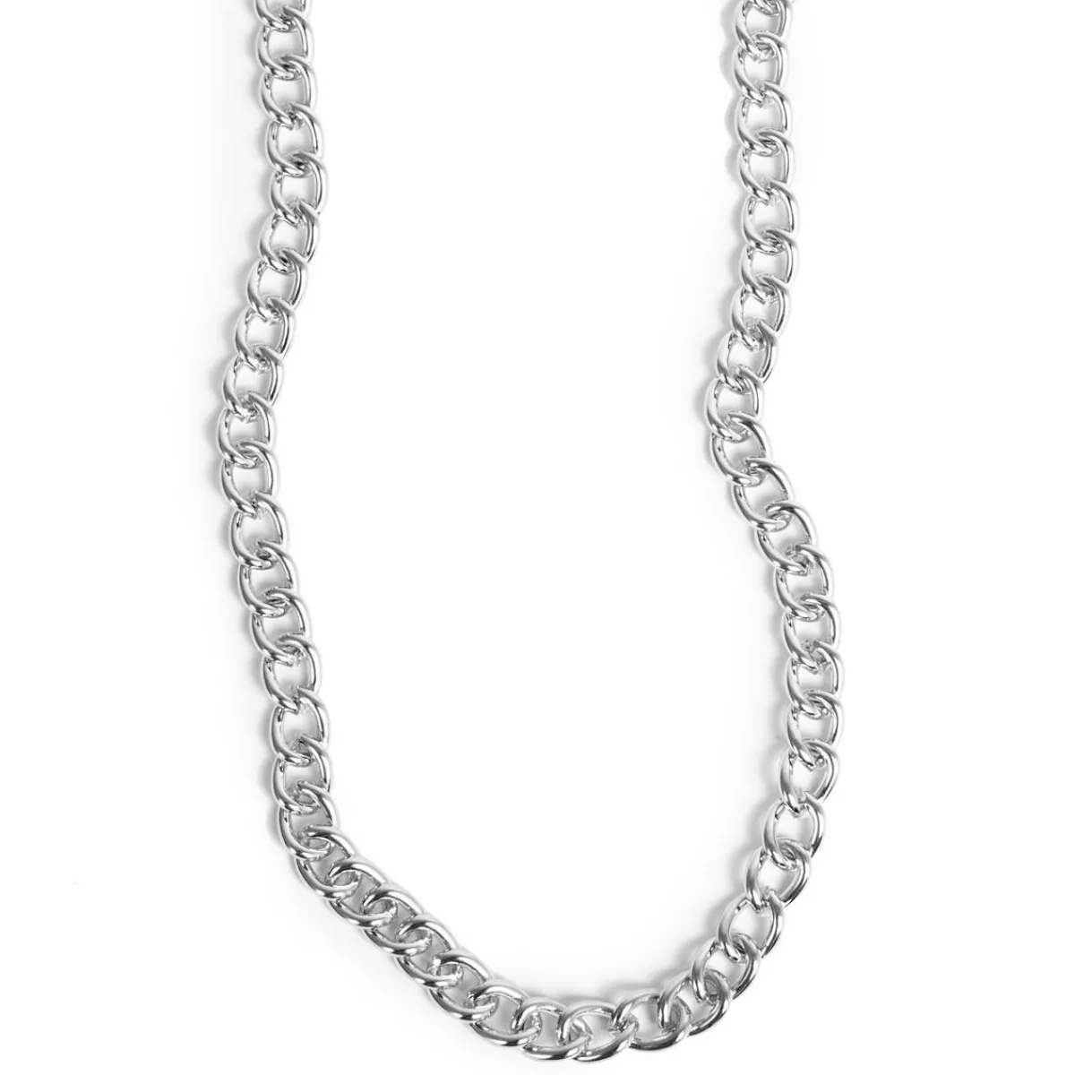 Et flott kraftig halskjede laget av en kraftig sølvbelagt stål-lenke som er fin alene og i kombinasjoner.