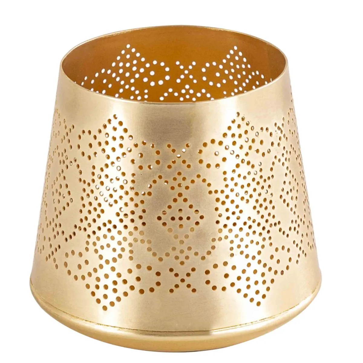 Eyla lyslykt på 10 cm i gull tilfører en subtil eleganse til enhver innredning. Denne kompakte lyslykten gir et mykt, stemningsfullt lys og passer perfekt på bordet eller hyllen.