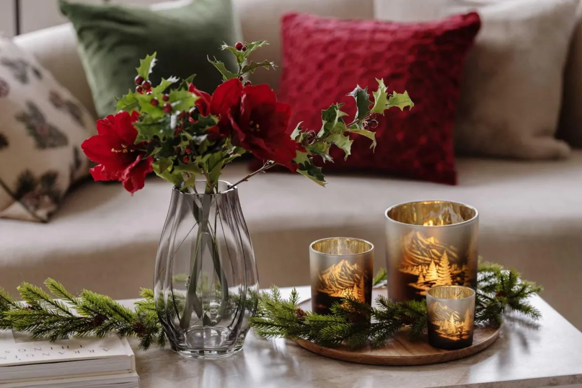 Skap en magisk vinterstemning i hjemmet ditt med vår vakre lyslykt Vinterfjell. Denne lyslykten i brun med ombre som går over til hvitt, skildrer et fortryllende landskap av trær og fjell.