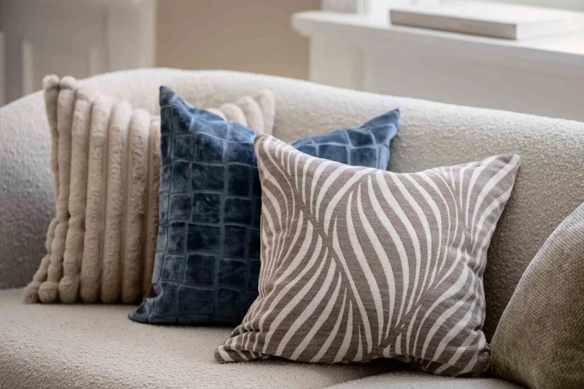 Et trendy putetrekk i velur med tekstur og markerte linjer i firkantmønster. La puten skille seg ut ved å kombinere den med nøytrale puter, eller sett den sammen med farger som harmonerer godt.