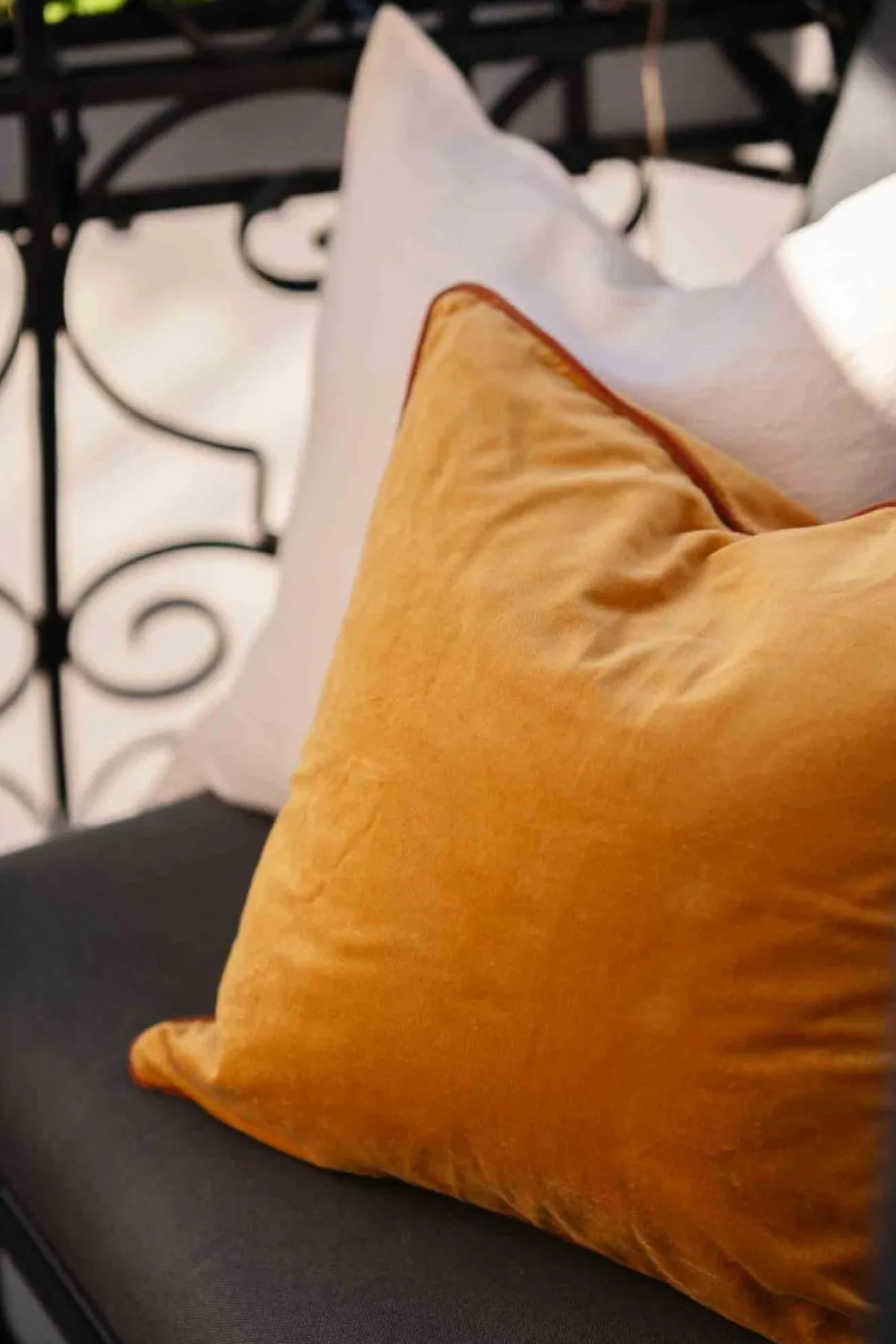 Et søtt velurputetrekk i fargen oker, med en fin kan i kontrastfargen rustrød. Sett sammen varierte putekombinasjoner som er perfekt til høsten. Putetrekk Piper kommer i . Miks & match med sesongens puter, og bli inspirert.
