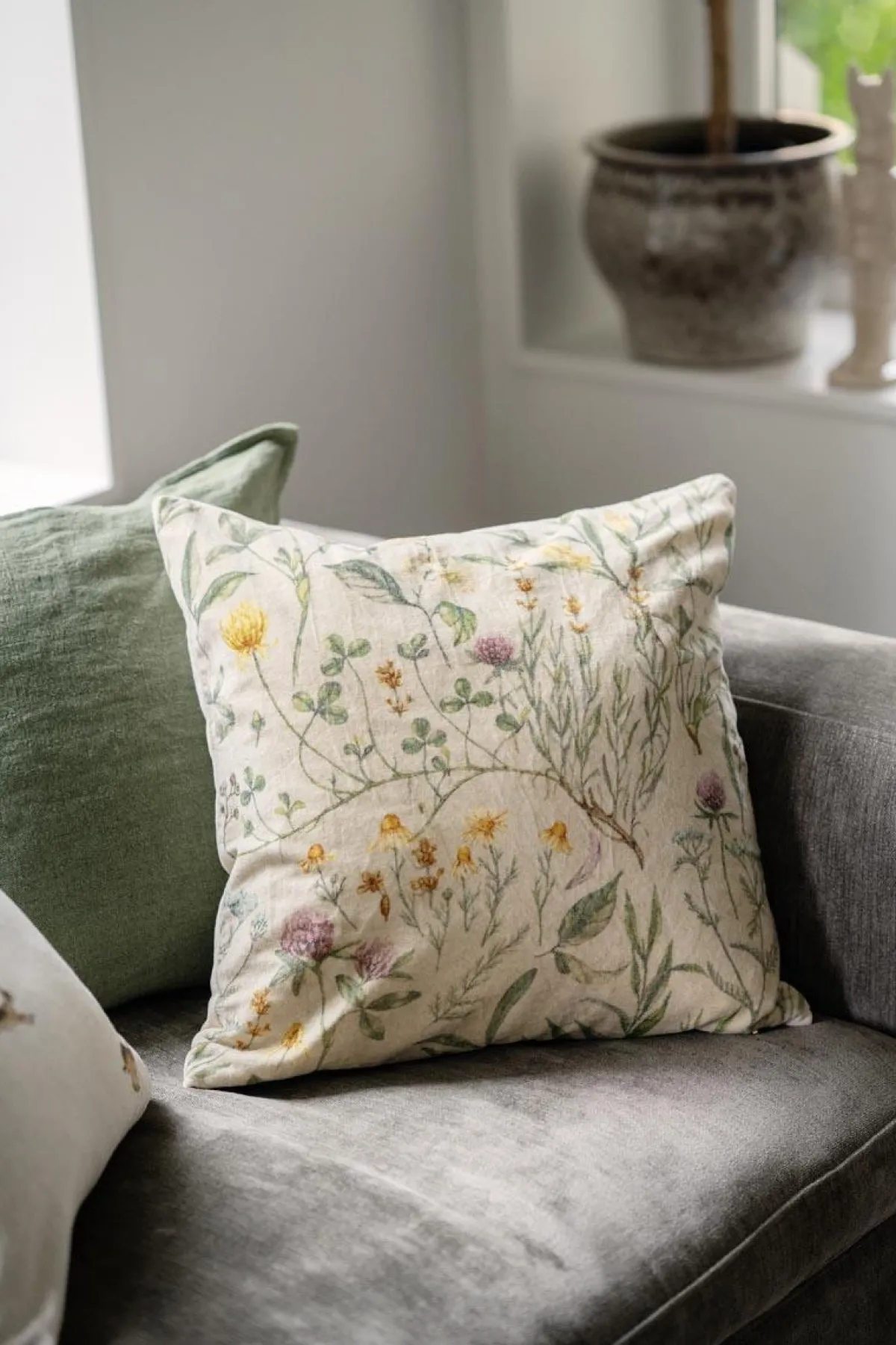 Herlig putetrekk som bringer naturens skjønnhet rett inn i stuen din med sine delikate blomster. Perfekt for å lyse opp en sofakrok eller som et friskt innslag på sengen. Denne tekstilen passer fint sammen med et naturlig farget teppe eller et par matchende puter for å fullføre et harmonisk preg i hjemmet. Den gir et lett pust av vår, selv når det fortsatt er kaldt ute.