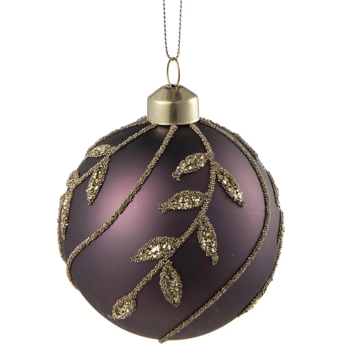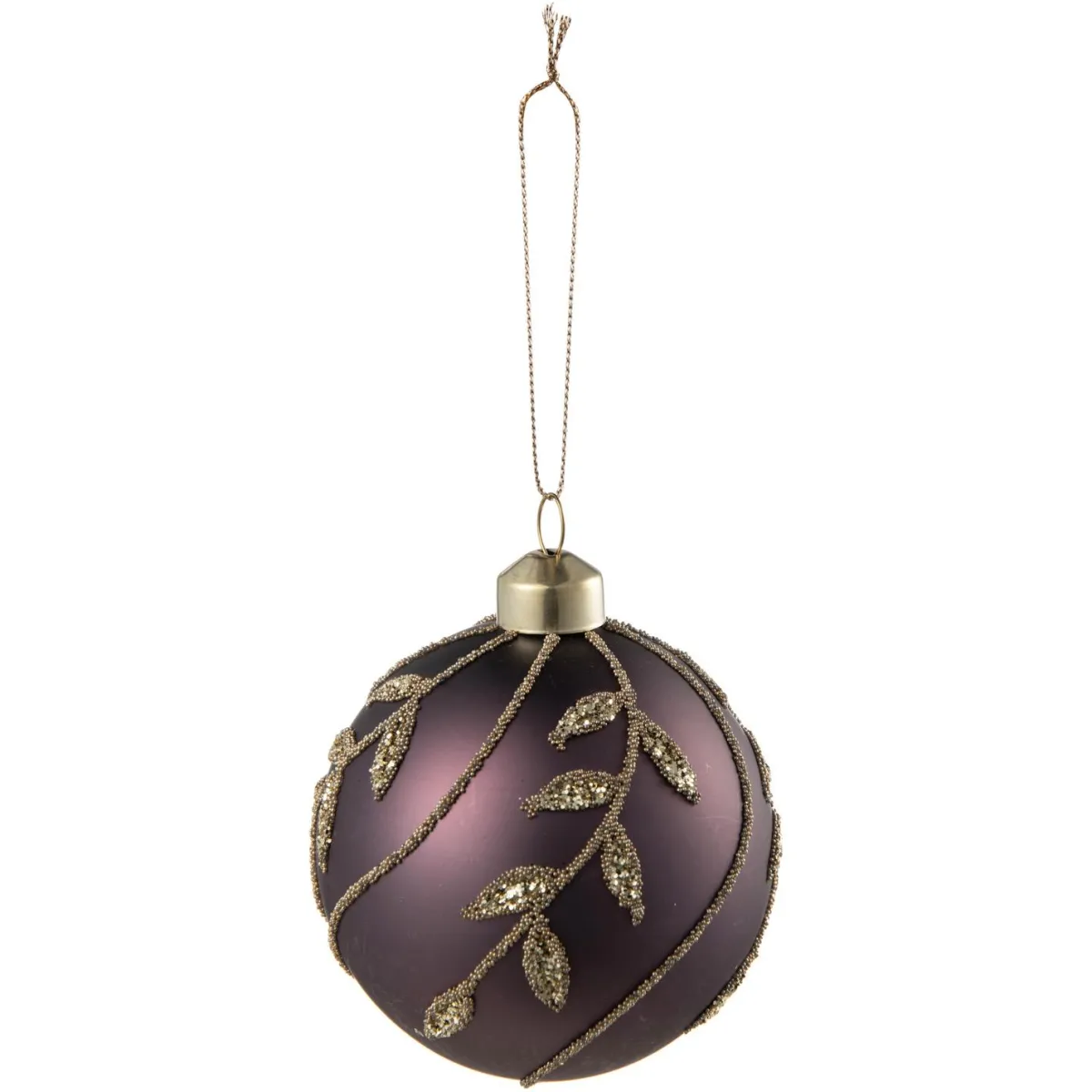 En delikat julekule i glass med roseblader i gullperler. En klassisk form med detaljer som passer perfekt på juletreet denne julen. Frisk opp og pynt et tre som gjenspeiler din smak og personlighet. kommer også i rosa, grønn og gull, og de er flotte å kombinere sammen.