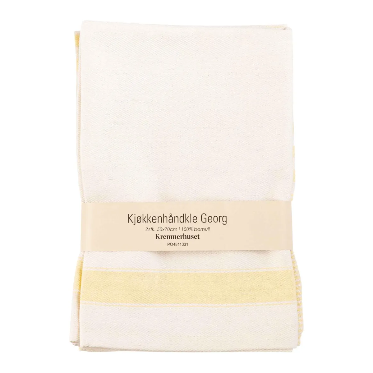 To kjøkkenhåndklær i et harmonisk design med delikate striper og ensfargede detaljer. Perfekt for å gi kjøkkenet et løft samtidig som de er praktiske i bruk. Kombiner med matchende spisebrikker eller løpere for et gjennomført uttrykk ved middagsbordet.