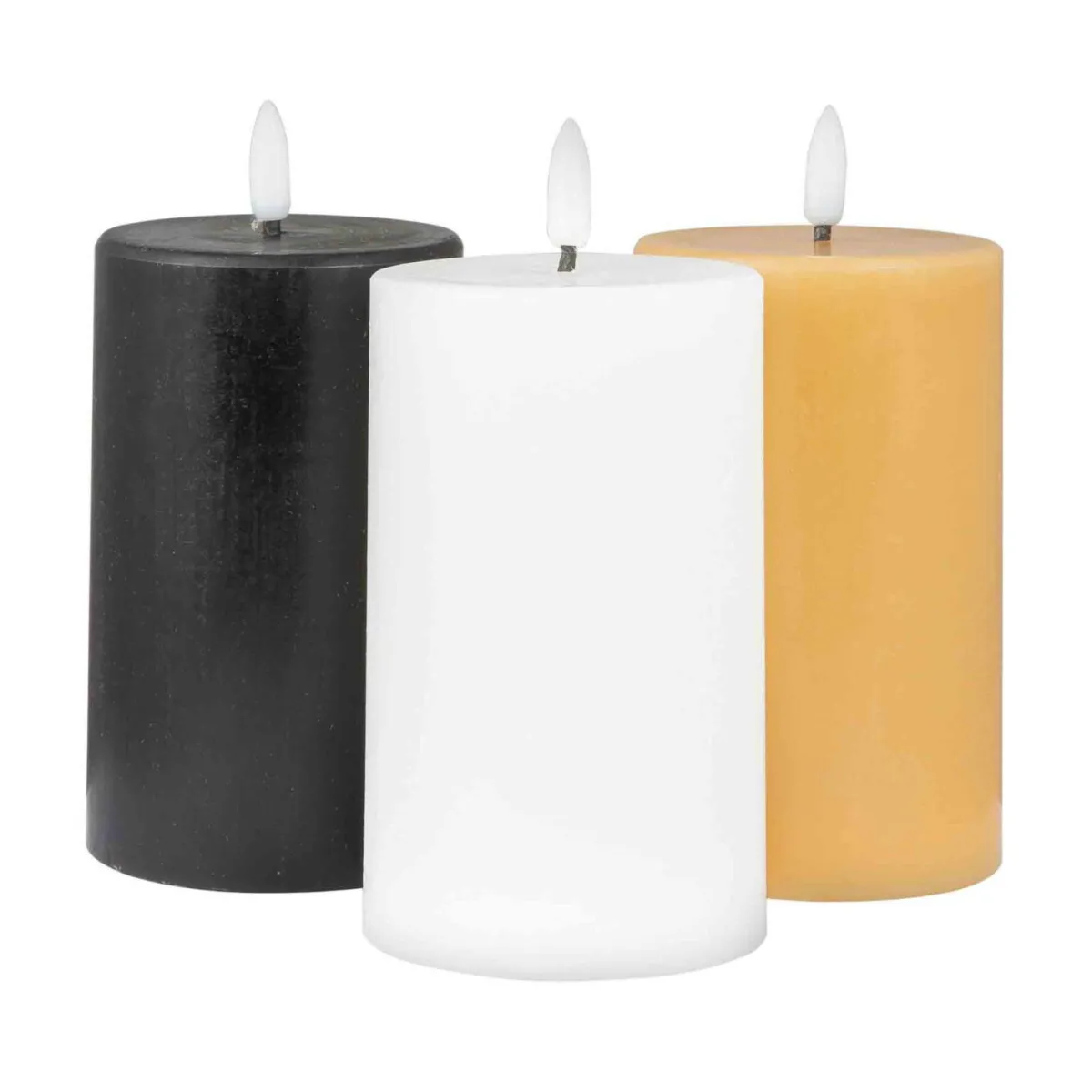 Kubbelys i fargen karamell med varmhvit blafrende LED-flamme. Stearinlyset har en timerfunksjon, som lar lyset brenne i 6-timers sykluser, for så å lyse opp igjen etter 18 timer. Bryteren har AV/TIMER/PÅ funksjon. Du kan også styre lyset med l.