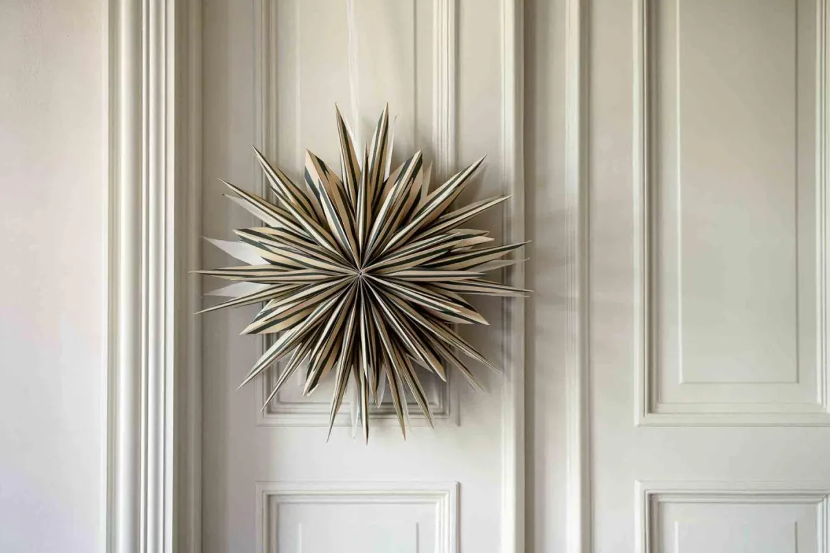 Adventsstjerne Stripe 60 er en papirstjerne som passer fint i vinduet eller som aksent på døra. Den kommer i en eske slik at den er enkel å oppbevare eller perfekt å gi bort som en gave. Adventsstjerna er laget med to lag papir, slik at den får en fyldig og fin form.