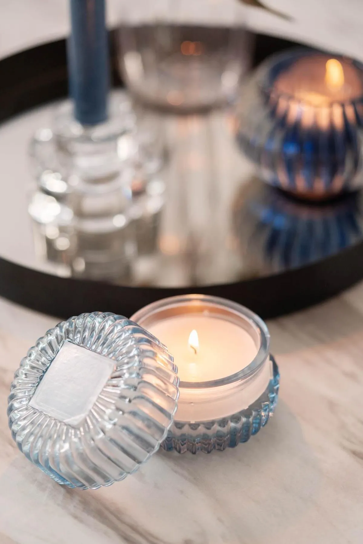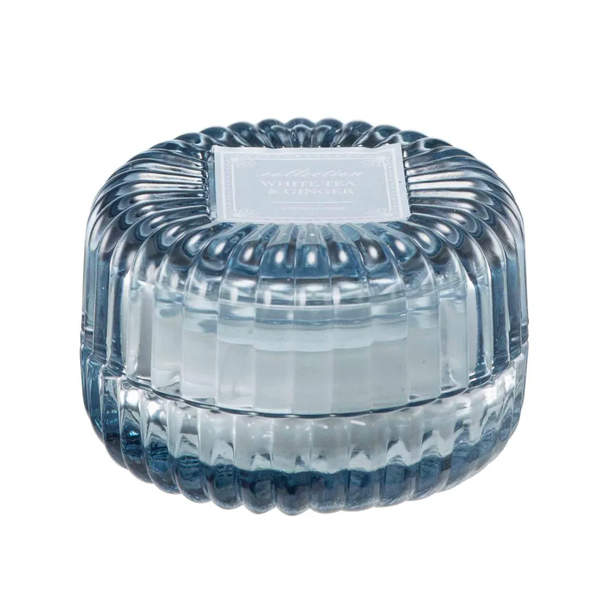 Duftlyset fyller rommet med en ren og mild kombinasjon av hvit te og ingefær. Glasset har en vakker blå nyanse som passer like fint i stua som på badet. Når lyset er brent opp, kan krukken brukes som en liten oppbevaringsboks. Kombiner med andre duftlys eller matchende tekstiler for et gjennomført uttrykk. Perfekt som gave eller en liten hverdagsglede.