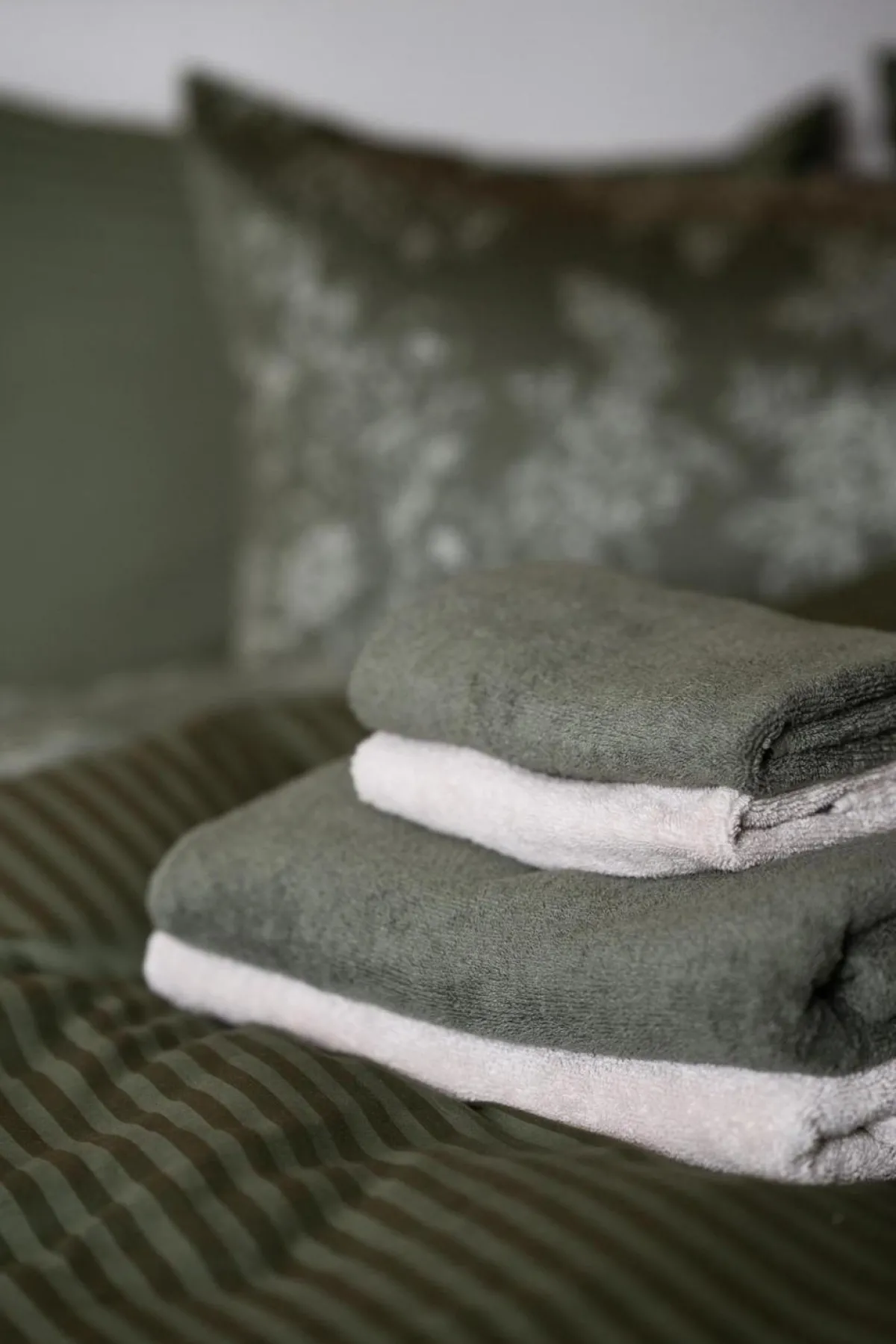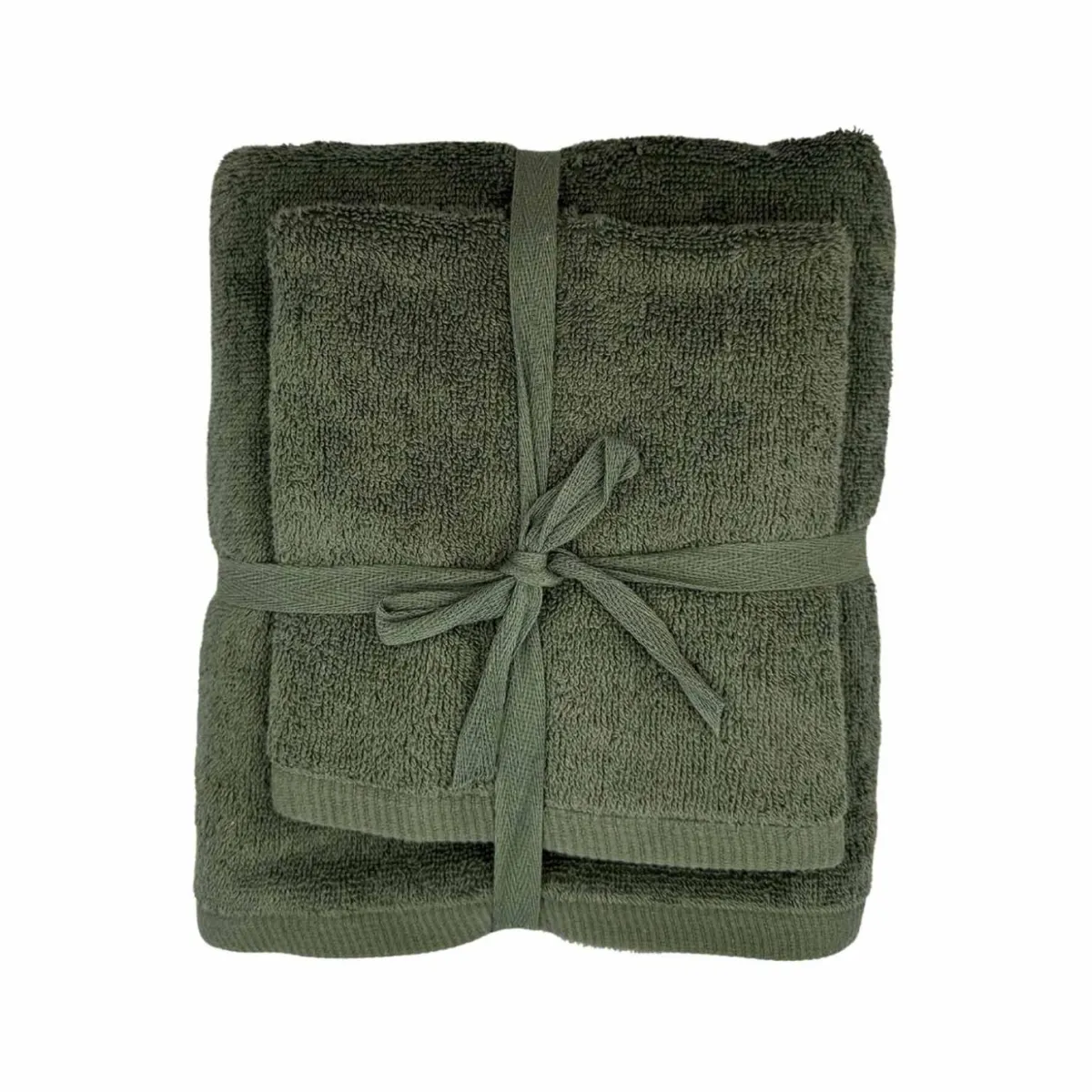 Dette settet består av to myke håndklær i en nydelig grønn farge. Settet består av et håndhåndkle og et dusjhåndkle. Perfekt til badet eller gjestetoalettet.
