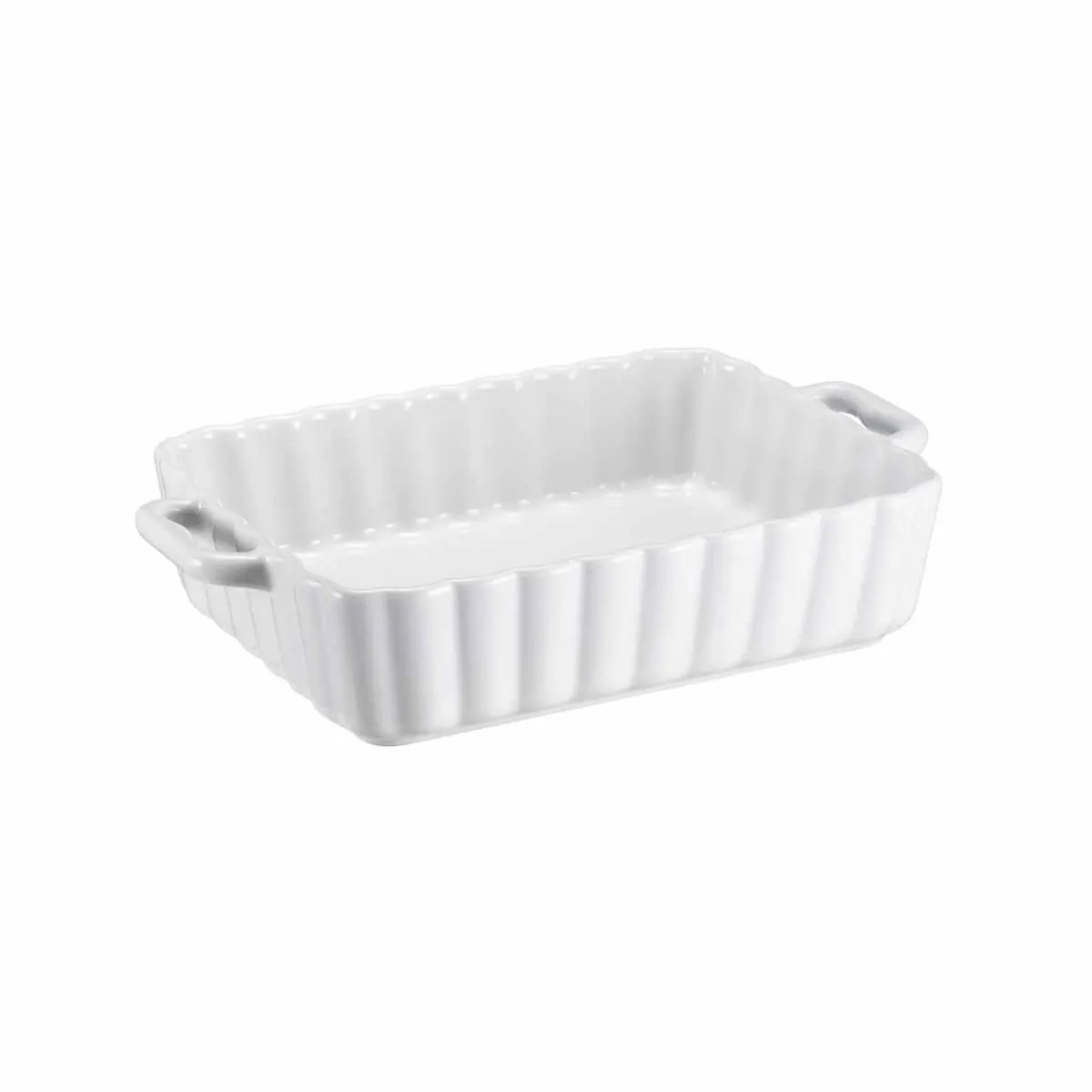 Sett med to hvite ildfaste former i tidløst design, perfekte til både hverdagsmåltider og festlige anledninger.