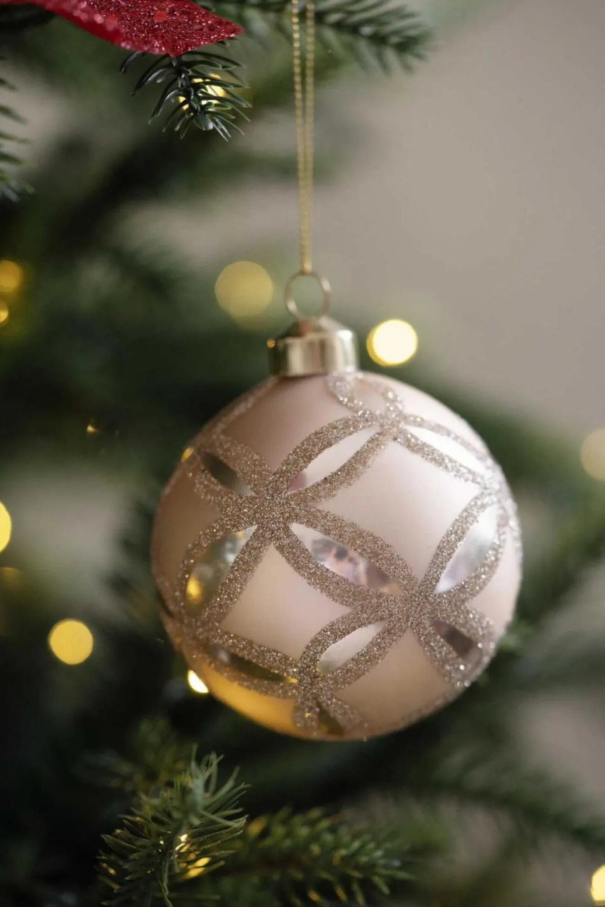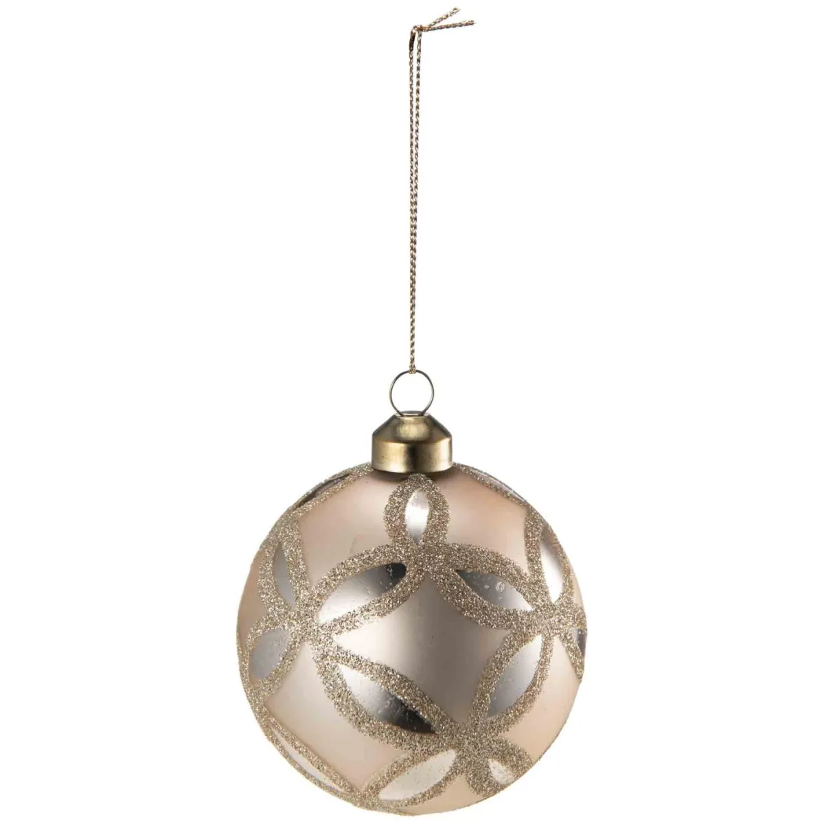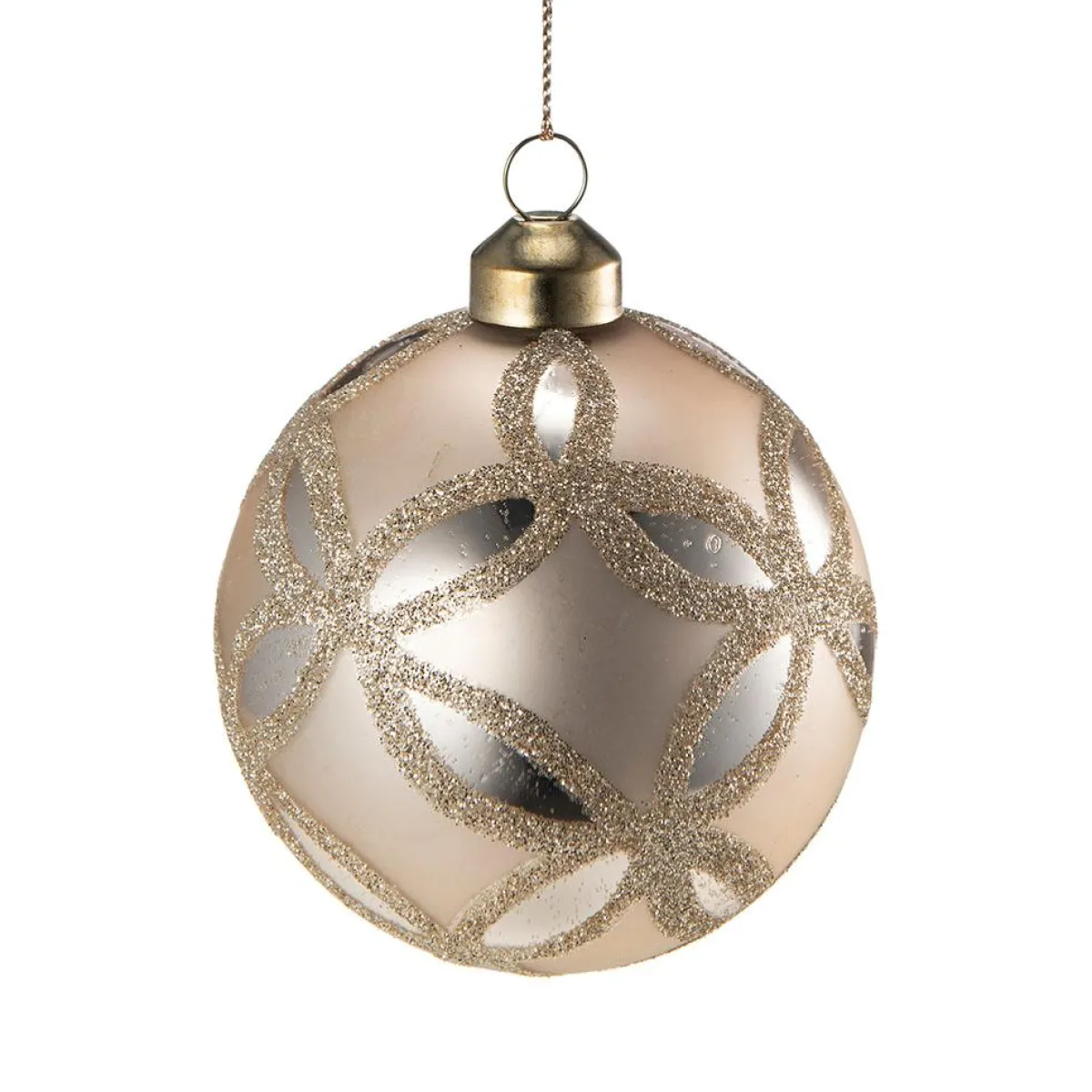 Elegant julekule i gull med fine glitterdetaljer, som gir det lille ekstra til juletreet. Kombiner ulike farger og mønstre på julekulene for å skape et personlig og unikt juletre.