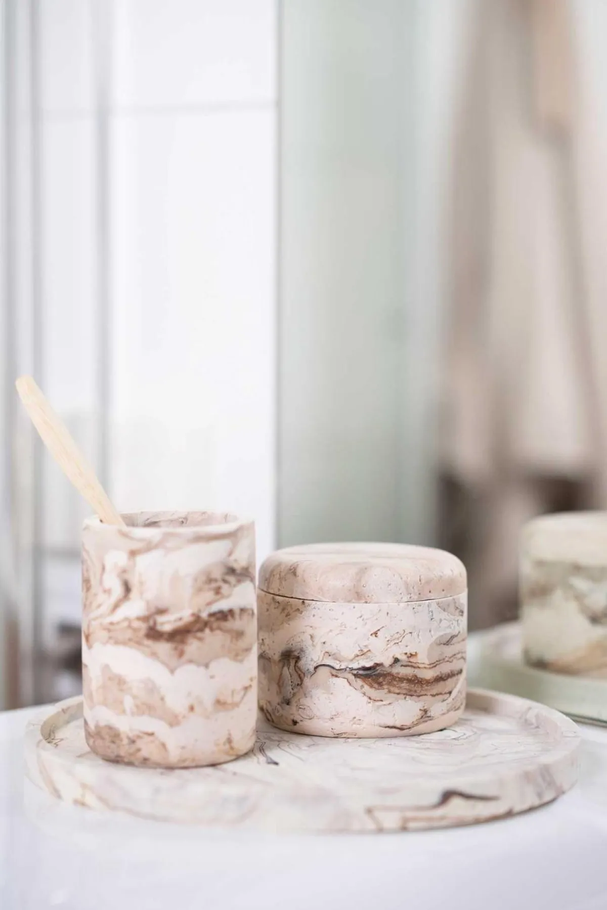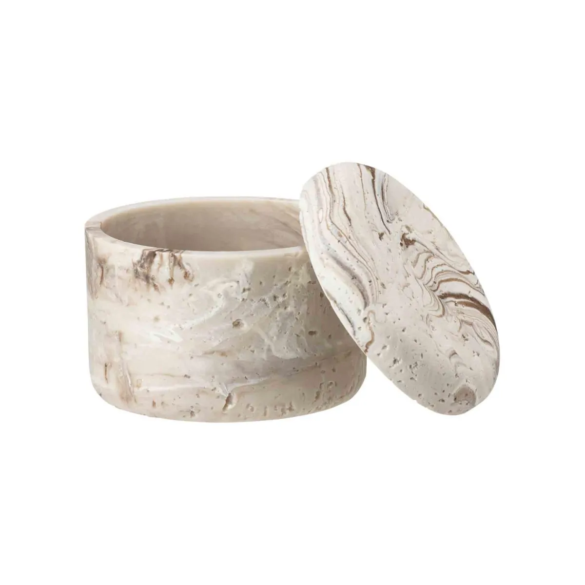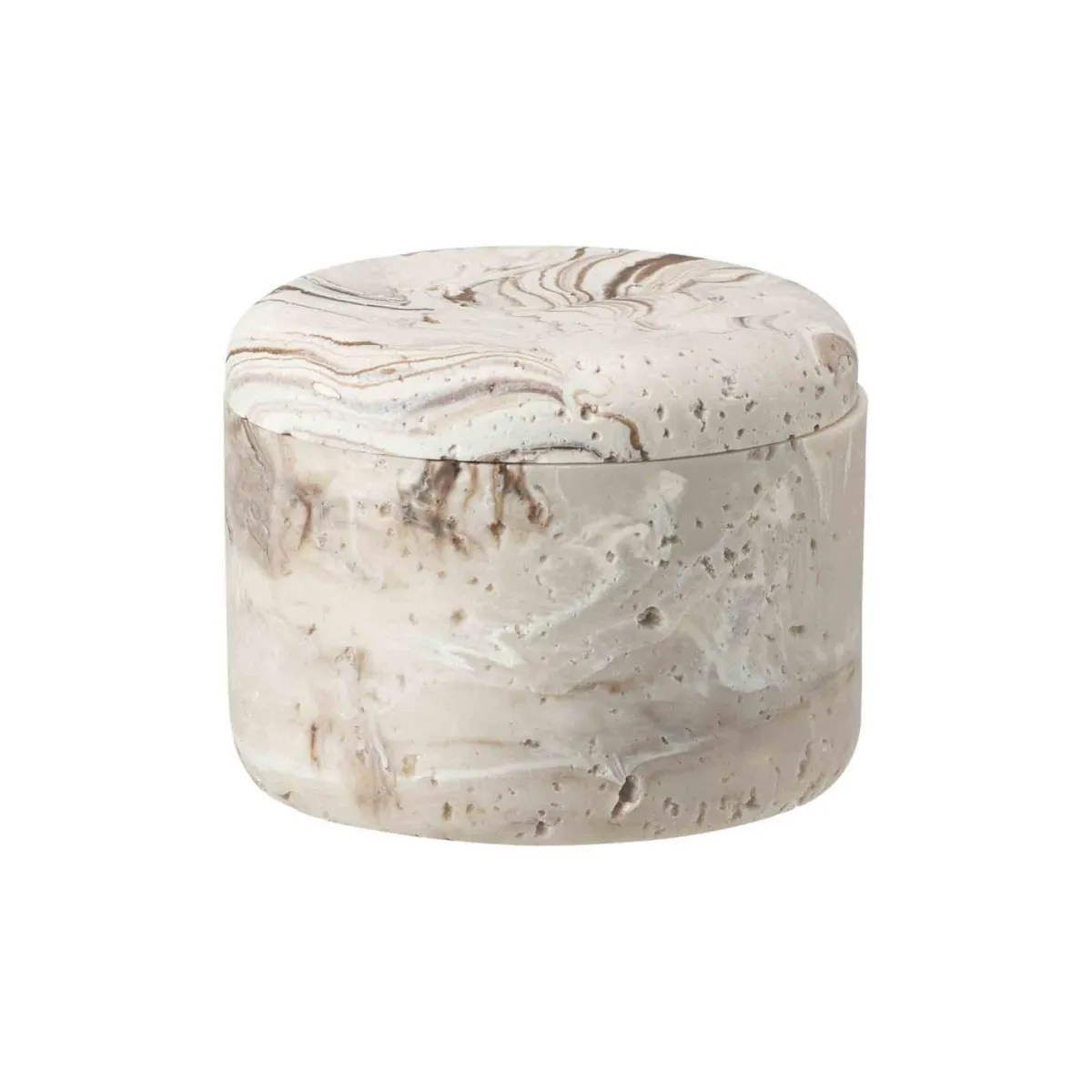 Organiser badet ditt med stil ved hjelp av vår praktiske oppbevaringsboks i marmor. Denne boksen kombinerer elegant design med funksjonalitet, perfekt for å holde badeprodukter organisert og tilgjengelige.