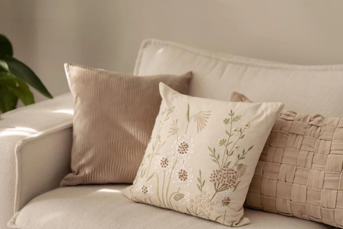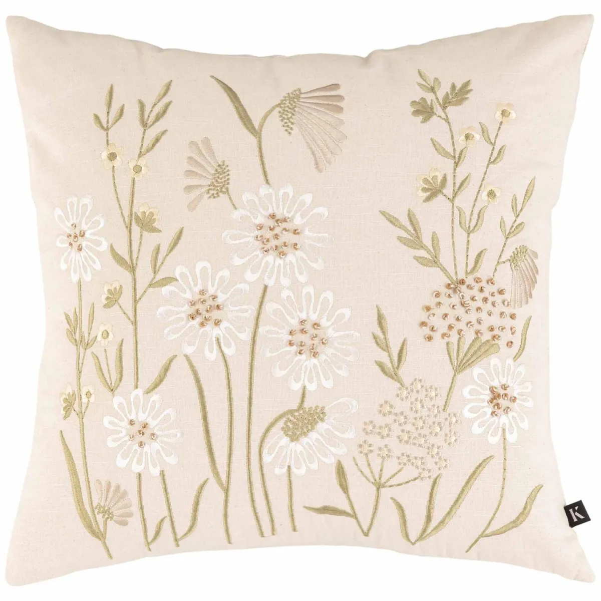 Putetrekk med broderte villblomster som bringer naturen inn i hjemmet. Det myke tekstilet skaper en lun og avslappet atmosfære, perfekt for sofaen, lenestolen eller sengen. Broderiets detaljer gir en tidløs sjarm som passer til både moderne og klassisk interiør. Kombiner med ensfargede puter eller et koselig pledd for et harmonisk uttrykk.