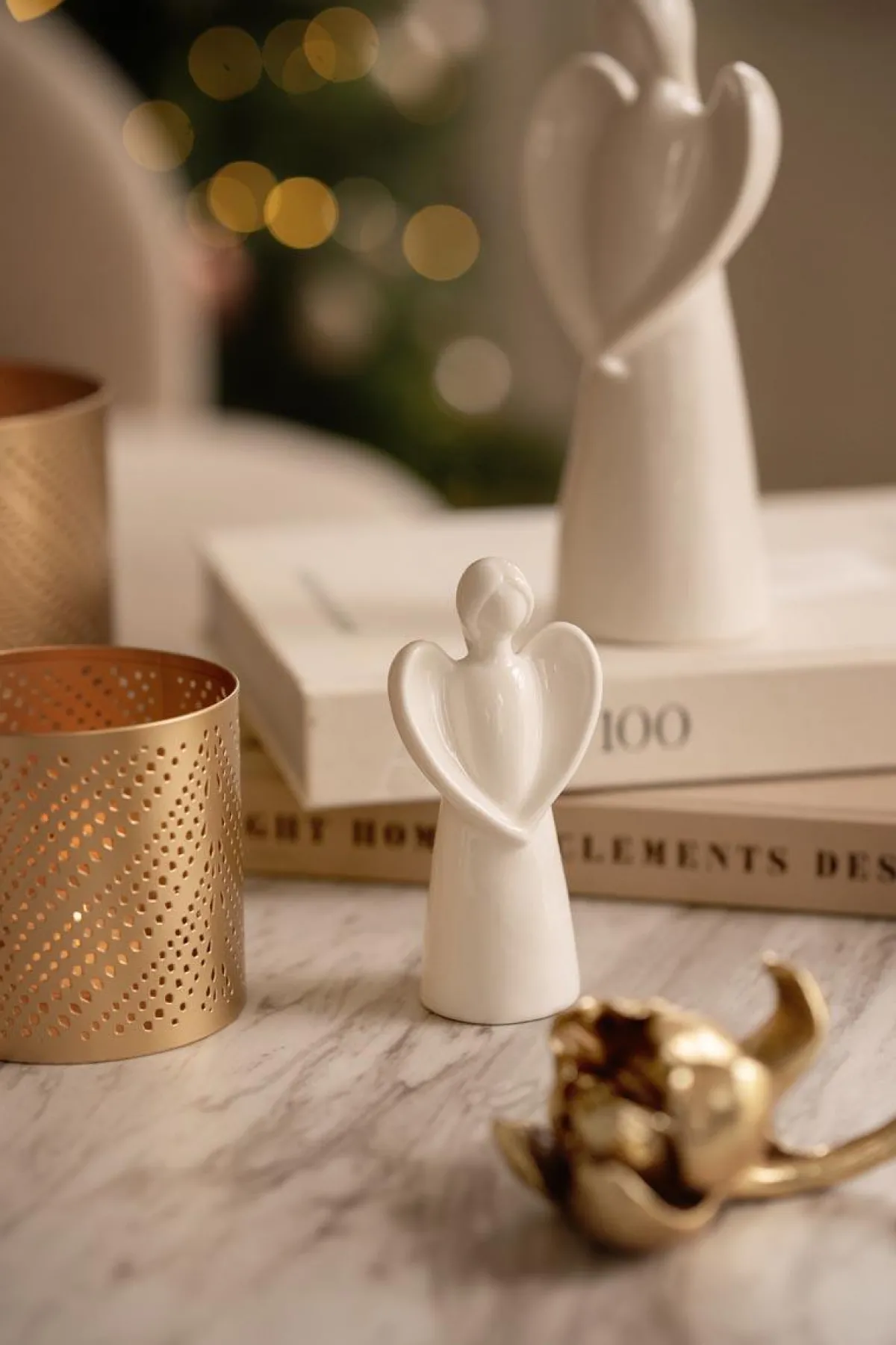 Denne engelfiguren i glatt hvit farge, med sitt minimalistiske design, tilfører en moderne eleganse til ethvert rom. Med sitt enkle, men vakre utseende, er den perfekt for dem som ønsker elegant juledekor.