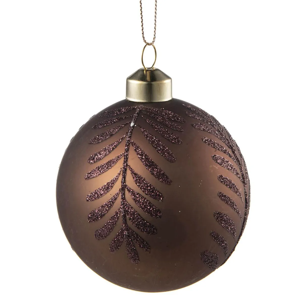 En nydelig julekule med glitter detaljer av blader som er fantastisk fin på juletreet. Et tips er å kombinere ulike farger og mønstre på julekulene for å skape et personlig og unikt juletre! kommer også i burgunder, grønn og gull, og de er flotte å kombinere sammen.
