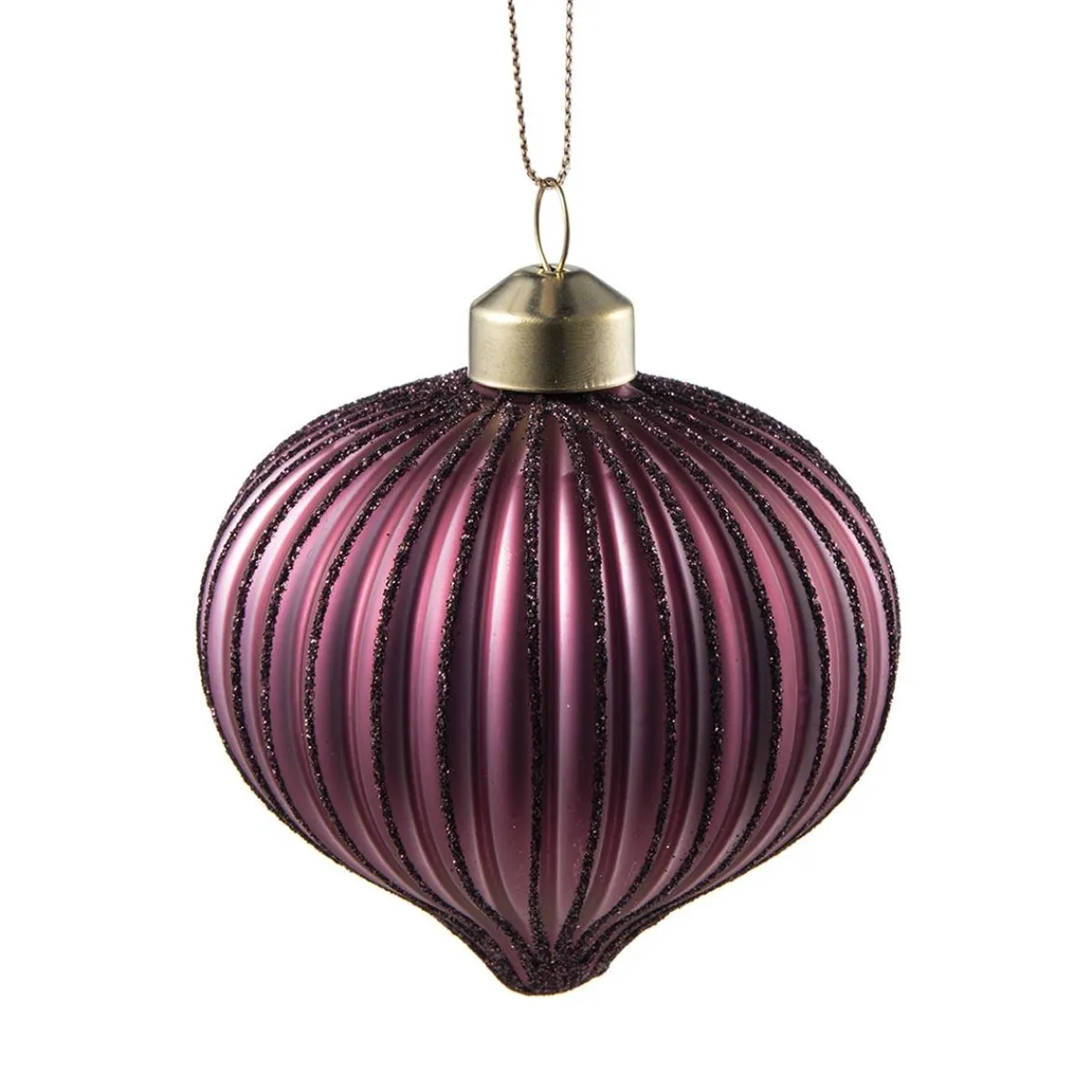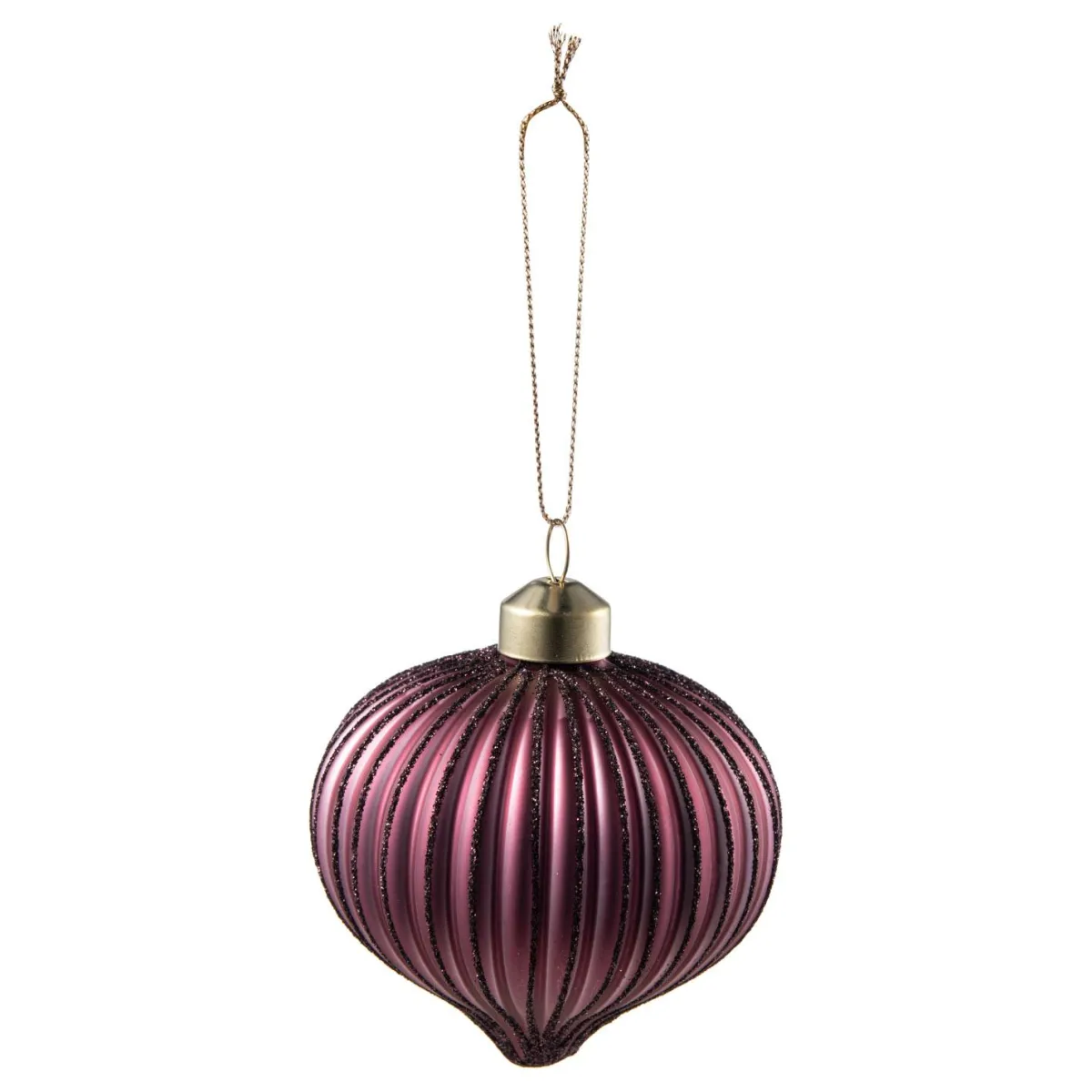 Nydelig burgunder julekule i glass med riller. Morsom og leken form som passer perfekt på juletreet denne julen. Frisk opp og pynt et tre som gjenspeiler din smak og personlighet. Kombiner den gjerne med de andre fargene av .