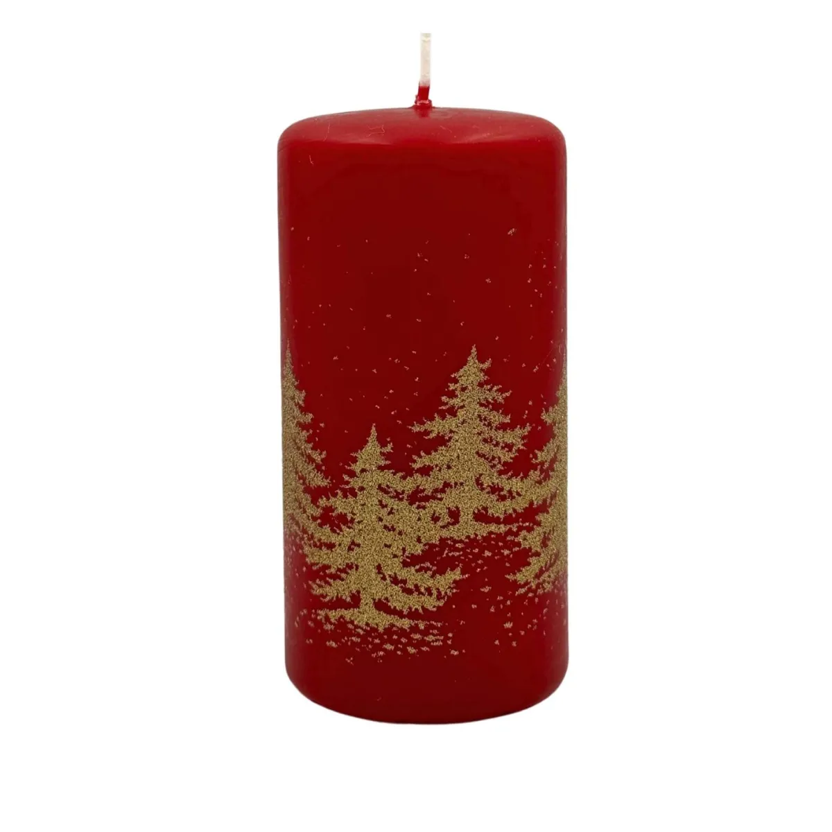 Dette røde kubbelyset er dekorert med et motiv av gullfargede grantrær som gir det et vinterlig preg. Lyset passer fint på bordet eller i en lysestake for å skape en varm stemning i hjemmet gjennom juletiden. Kombiner det gjerne med andre lys i ulike størrelser eller farger for en hyggelig effekt. Dette lyset kan være en del av julepynten eller fungere som en liten oppmerksomhet til en du vil glede i desemberdagene.
