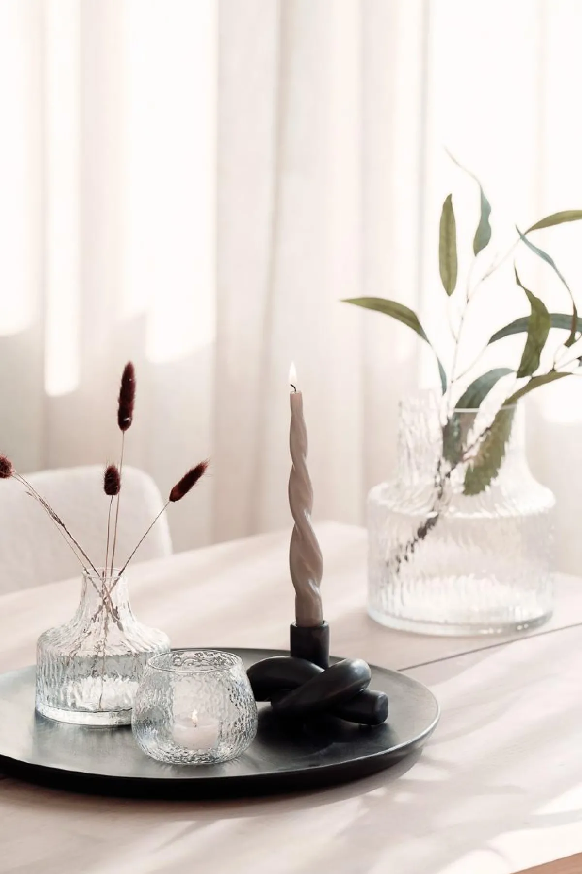 Stilig sort lysfat i mangotre. Den store størrelsen gjør at du lett får plassert all pynten du måtte ønske sammen. Kombiner lysestaker og vaser, og likevel ha plass til en pyntefigur.