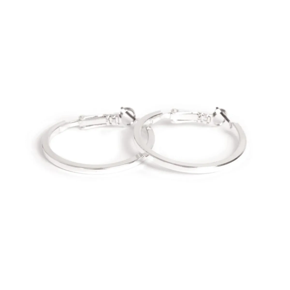 Enkle øreringer i en blank sølvfarget firkantprofil med en god klypelås som er lett å ta av og på. Kommer i flere størrelser, disse er medium.