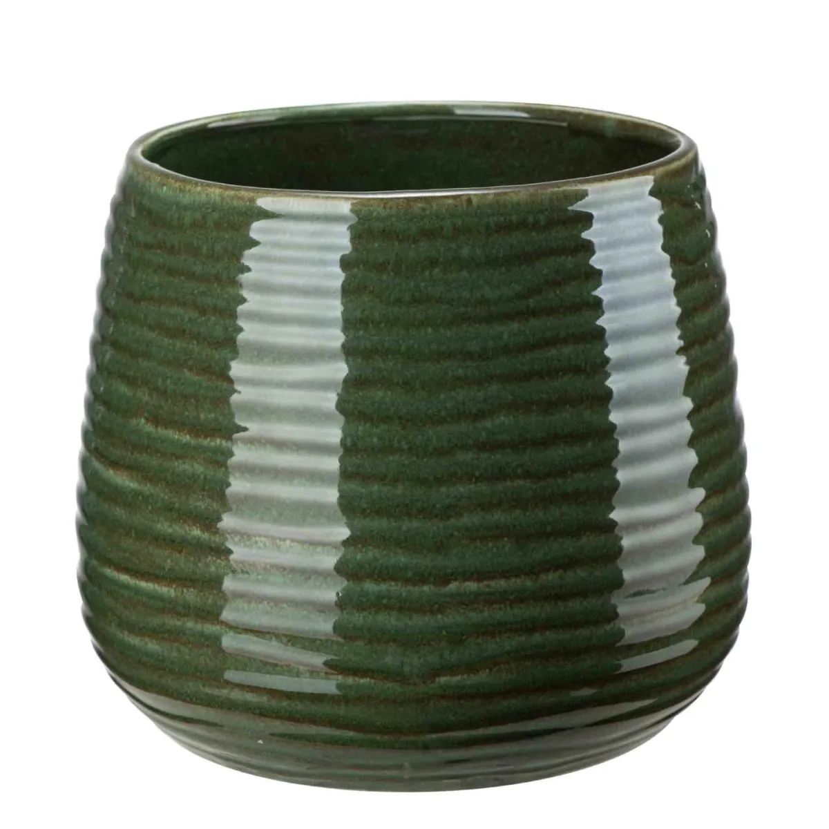 En potte som gir plantene et nytt hjem med tekstur og dybde. Det stripepregede mønsteret og den dype grønne fargen gjør den enkel å kombinere med andre keramikkpotter eller naturmaterialer. Perfekt til små grønne planter, men kommer også i en større størrelse for planter som trenger litt mer plass.