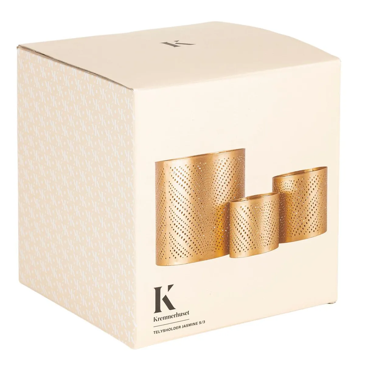 Sett stemningen med Jasmine lyslyktsett i gyllen metallfinish. De tre lyktene har dekorative hullmønstre som gir et vakkert lys når de tennes. Kommer i en pen gaveeske – perfekt som vertinnegave, pakkelek eller til noen du er glad i. Sett de gjerne på et som et fint samle punkt på bordet.