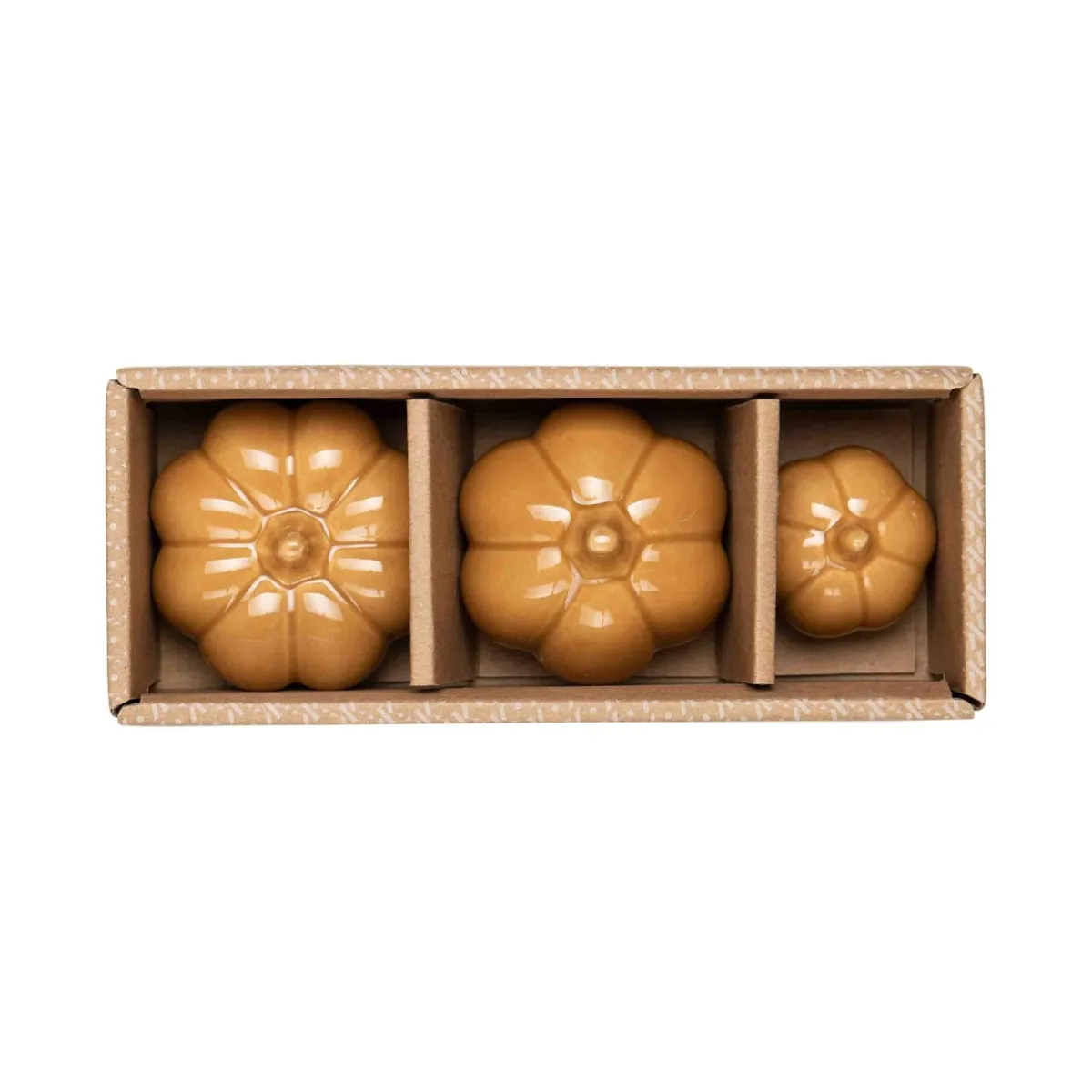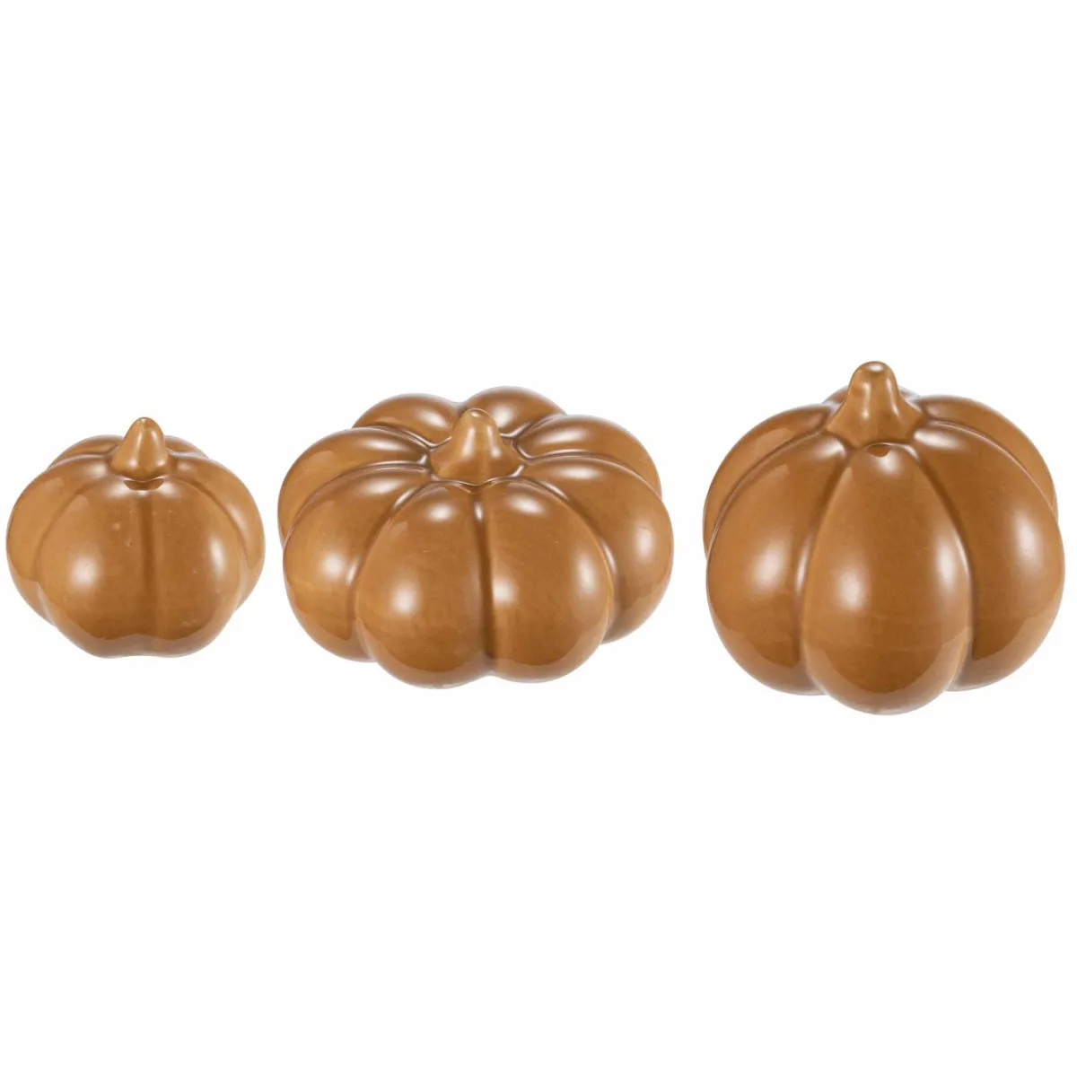 Skap en koselig høststemning med disse tre sjarmerende gresskarfigurene i keramikk. De vakre okerfargede figurene er perfekte som dekorasjon på bord, hyller eller vinduskarmer. Enkle, stilfulle og ideelle for å tilføre en varm, sesongbasert touch til hjemmet ditt. Finnes også i fargene og .