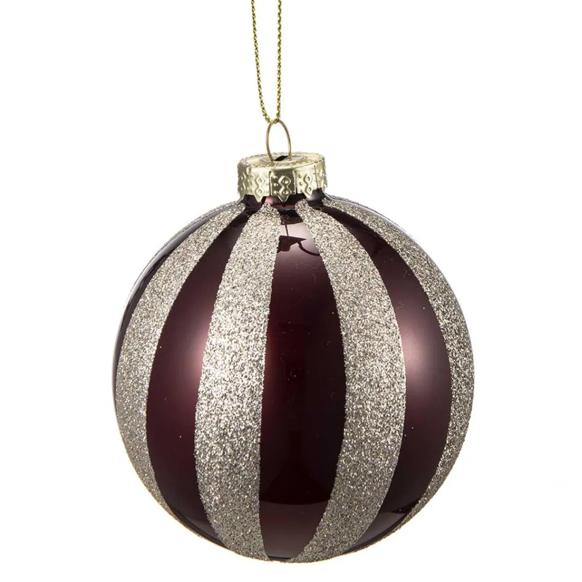 Denne søte julekulen i rød og gullglitter striper, som minner oss om en candy cane, vil gi en herlig touch til din juledekor. La denne delikate kulen få en plass på juletreet i år.