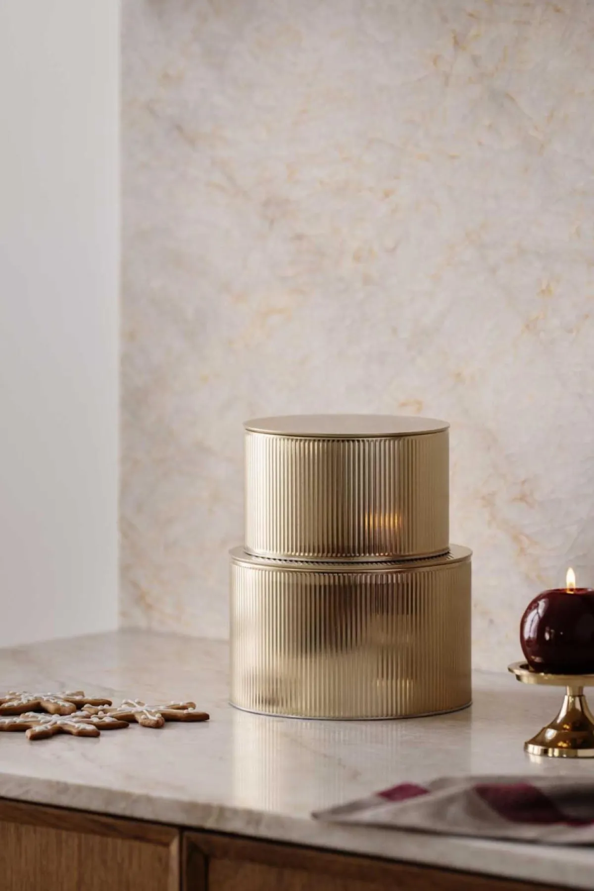 Våre 2-pakk kakebokser i gull med elegante riller kombinerer stil og praktisk oppbevaring. Disse boksene er ideelle for å holde dine hjemmebakte godsaker friske og presentable. Med et enkelt, men elegant design, passer de perfekt til enhver anledning.