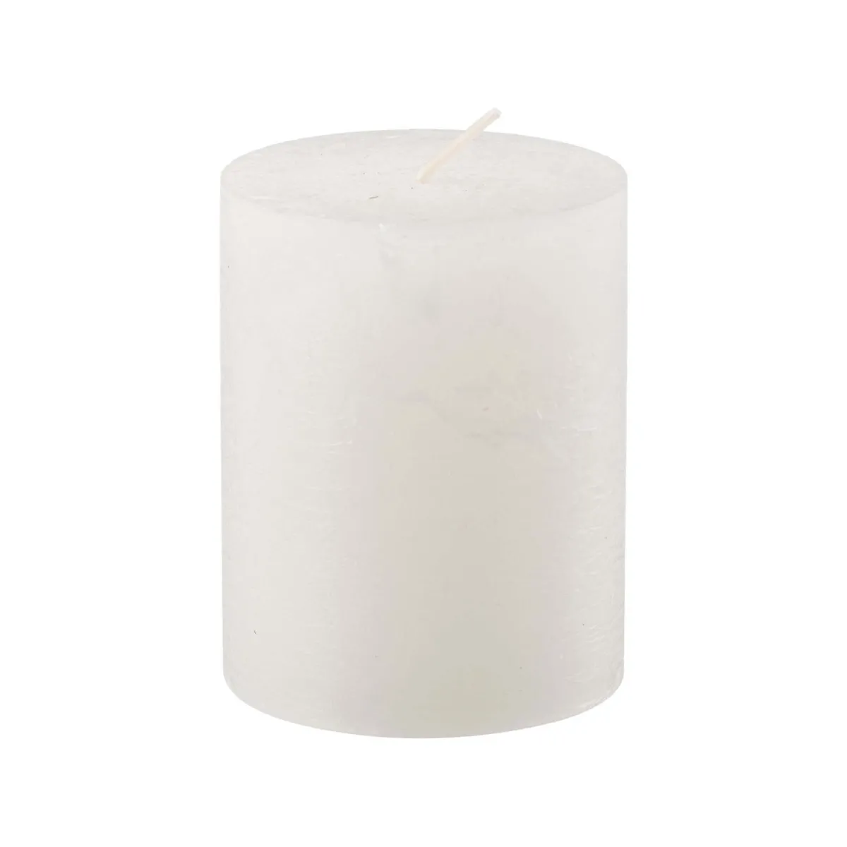 Rustikk kubbelys laget av parafinvoks, med en lett strukturert overflate som gir et varmt uttrykk på både brett og lysfat.
